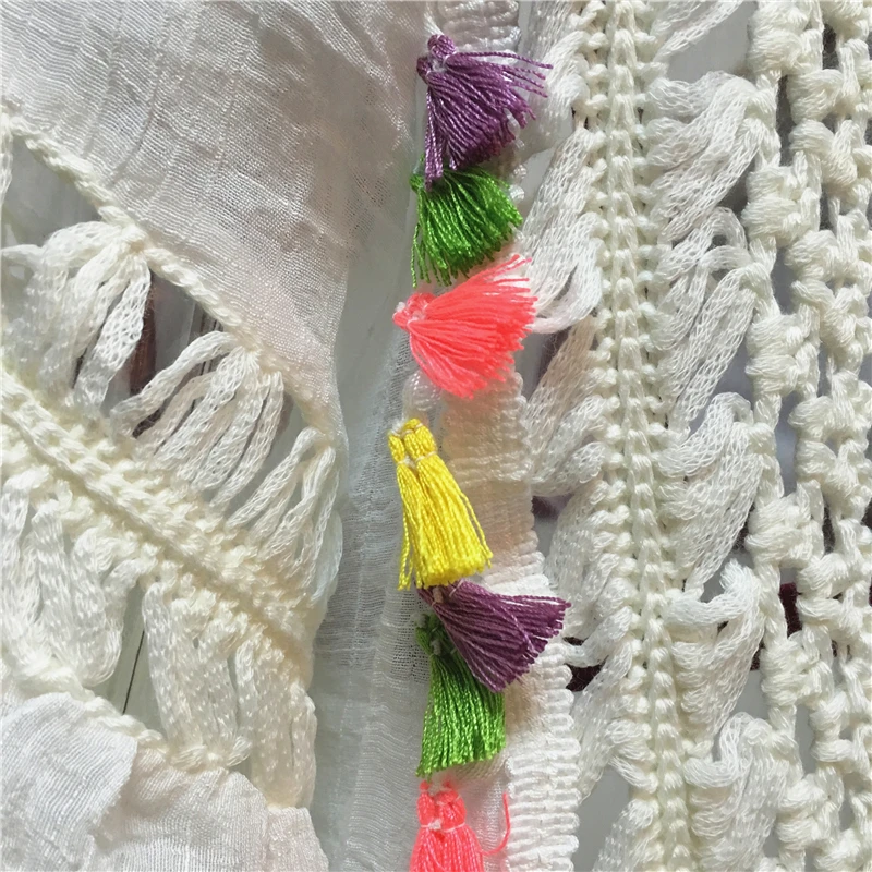 Belleziva Для женщин сексуальный цветная кисточка Прозрачное нижнее белье крючком Туника Пляжная накидка Плавание летняя одежда с рисунком из Bikini Cover Up Плавание пляжное платье