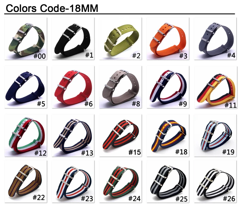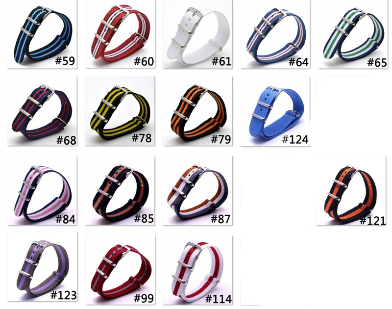 Материал: нейлоновый ремешок, Пряжка из нержавеющей стали Группа Ширина: 16/18/20 мм/22 мм/24 мм Длина ремешка: 265 мм Тип застежки: Пряжка Пружинная планка: в комплекте