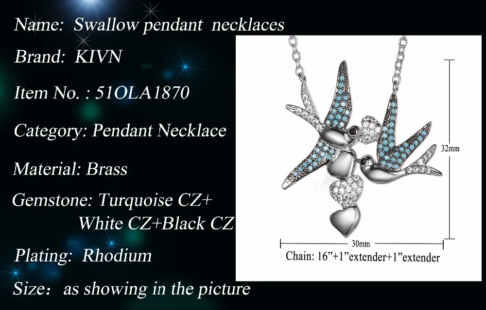Не содержит свинец, кадмий и никель Изготовлено из квалифицированного материала, родиевое покрытие Сделано с безупречным кубическим цирконием класса AAA, который является доступной альтернативой алмазам, которая показывает блестящий блеск и тщательный крой Прекрасный подарок на день Святого Валентина, День матери, Рождество, свадьбу, годовщину, выпускной, день рождения, подружки невесты, выпускной вечер и официальные мероприятия или любой случай... Лучшие продавец! Отличная цена! 100% гарантия! Быстрая доставка-Легкий возврат Это сверкающее ожерелье с подвеской имеет скользящую ласточку с фианитами. Ласточка представляет любовь, заботу и привязанность к семье и друзьям, показывая верность человека, всегда возвращающегося к ним. Подумайте о покупке одного из наших модных ожерелья в качестве подарка на день рождения для женщин, которые любят уникальные и роскошные ювелирные изделия.