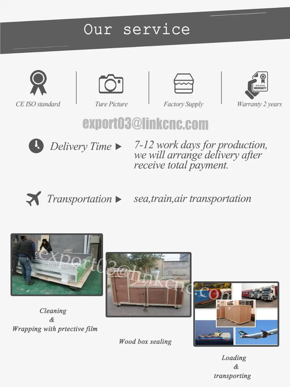Мы предлагаем сервис от вас, включая, как установить машину, как использовать машину, как разрешить работу машины и так далее. Обычно мы научим вас, как делать по электронной почте или по skype,wechat,whatsaap. Наш инженер имеет многолетний опыт работы с ЧПУ. Он хорошо говорит по-английски, поэтому он может решить эту проблему за короткое время.
