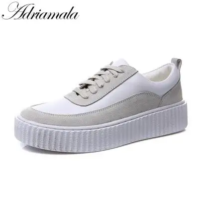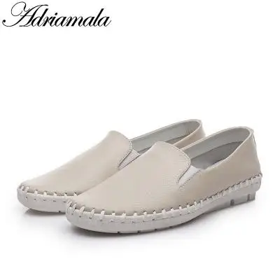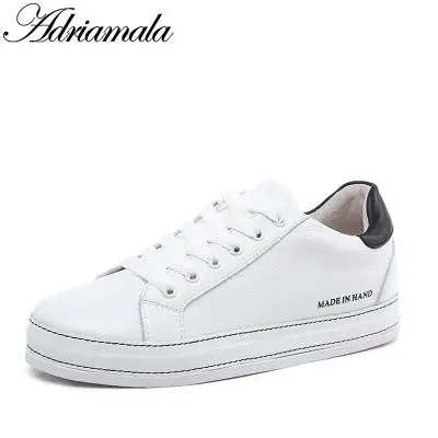 Adriamala/кожаные женские лоферы, коллекция 2018 года, весна-лето, Новые повседневные белые кожаные туфли на плоской подошве с круглым носком, на шнуровке