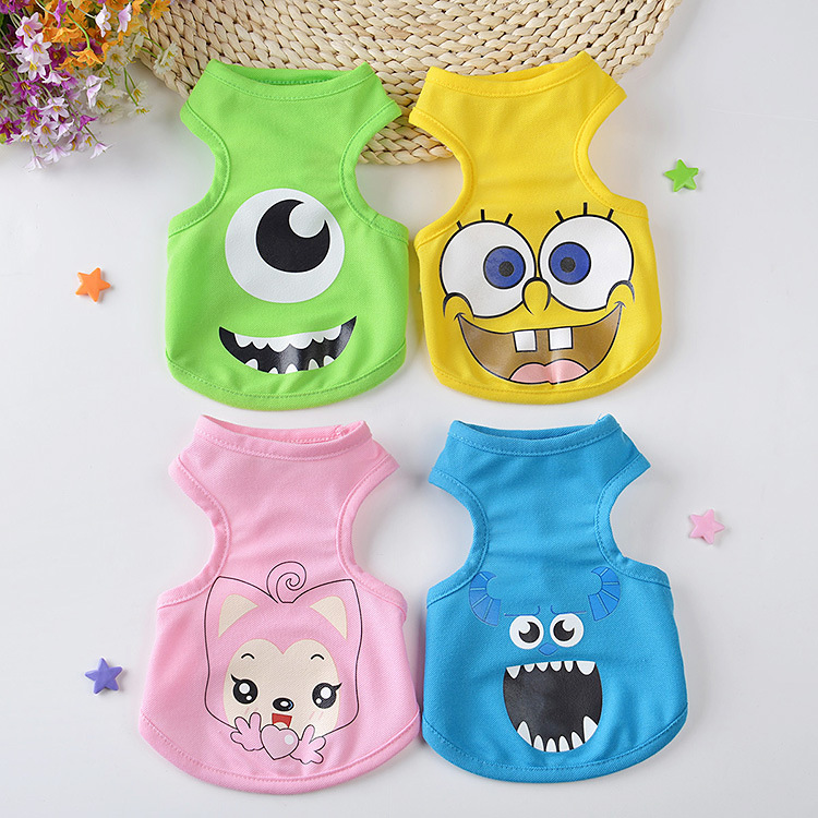 2018 Новый чехол для мобильных телефонов с жилет Летняя одежда с принтом в виде собак для маленьких футболка с рисунком собак из мультфильма милый костюм для собак Тедди для домашних животных, для детей 10 лет-Цвет