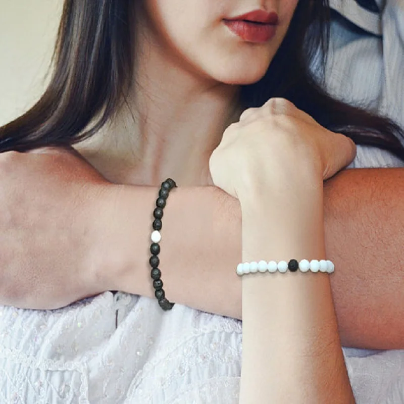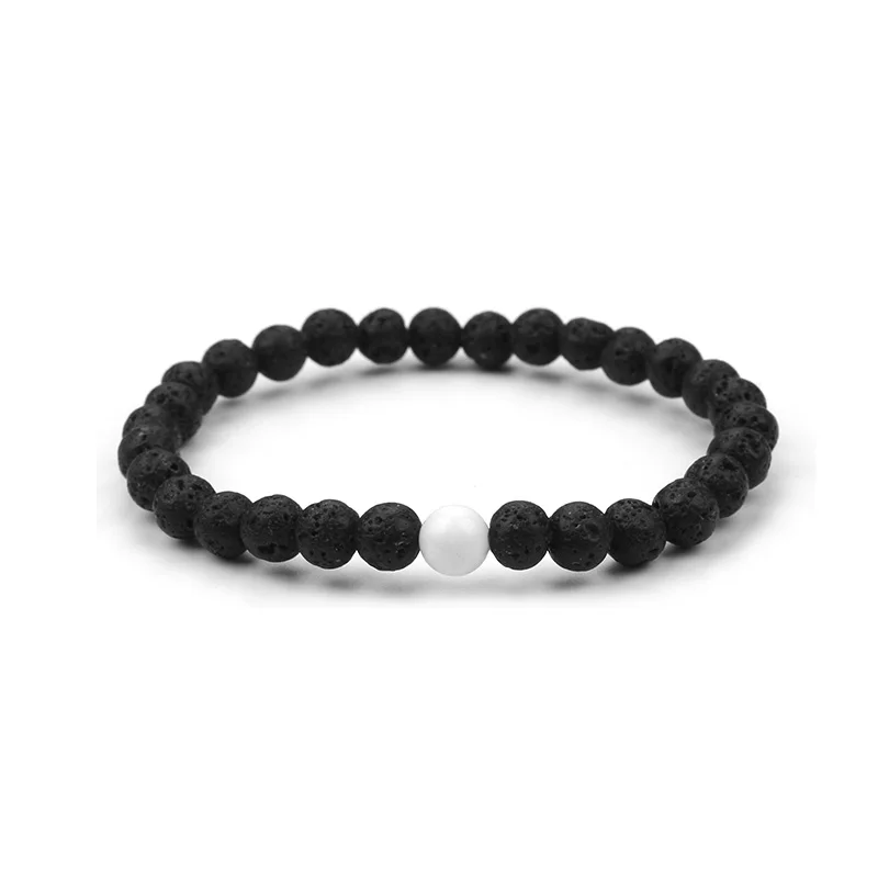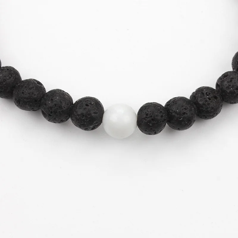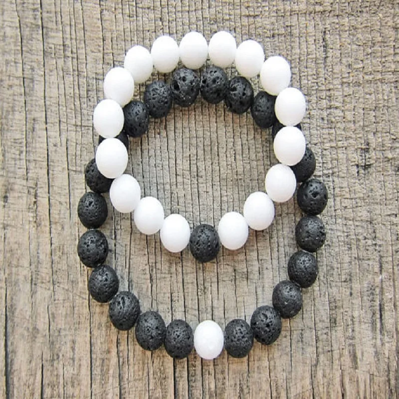 2 шт./компл., ручная работа, мужские и женские ювелирные изделия, подарок, черная лава, белый натуральный камень, бисер, пара браслетов, эластичные украшения для бойфренда EY480