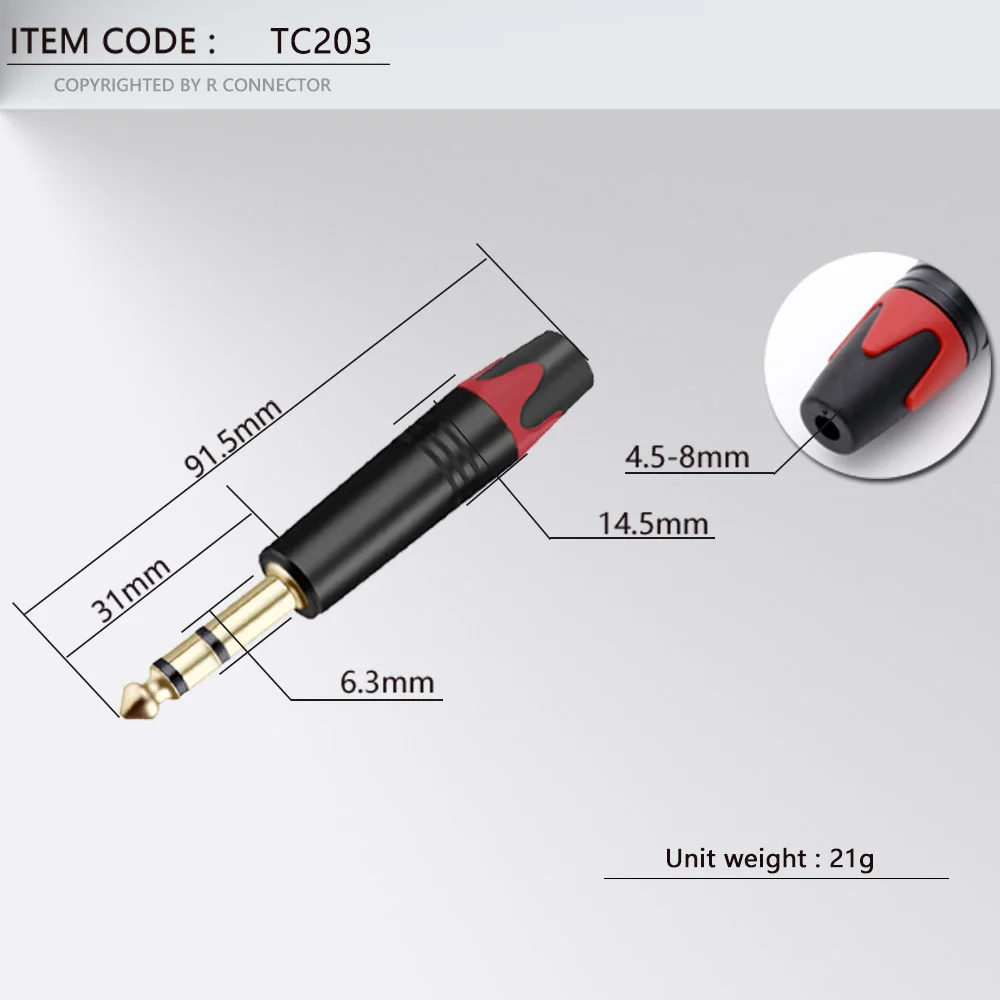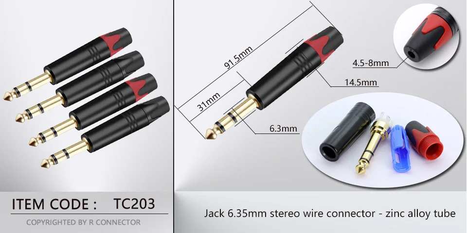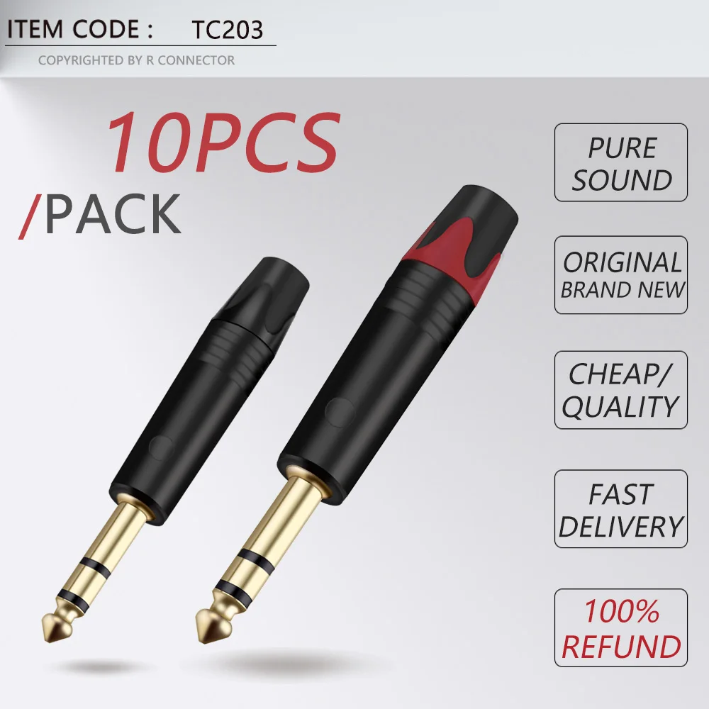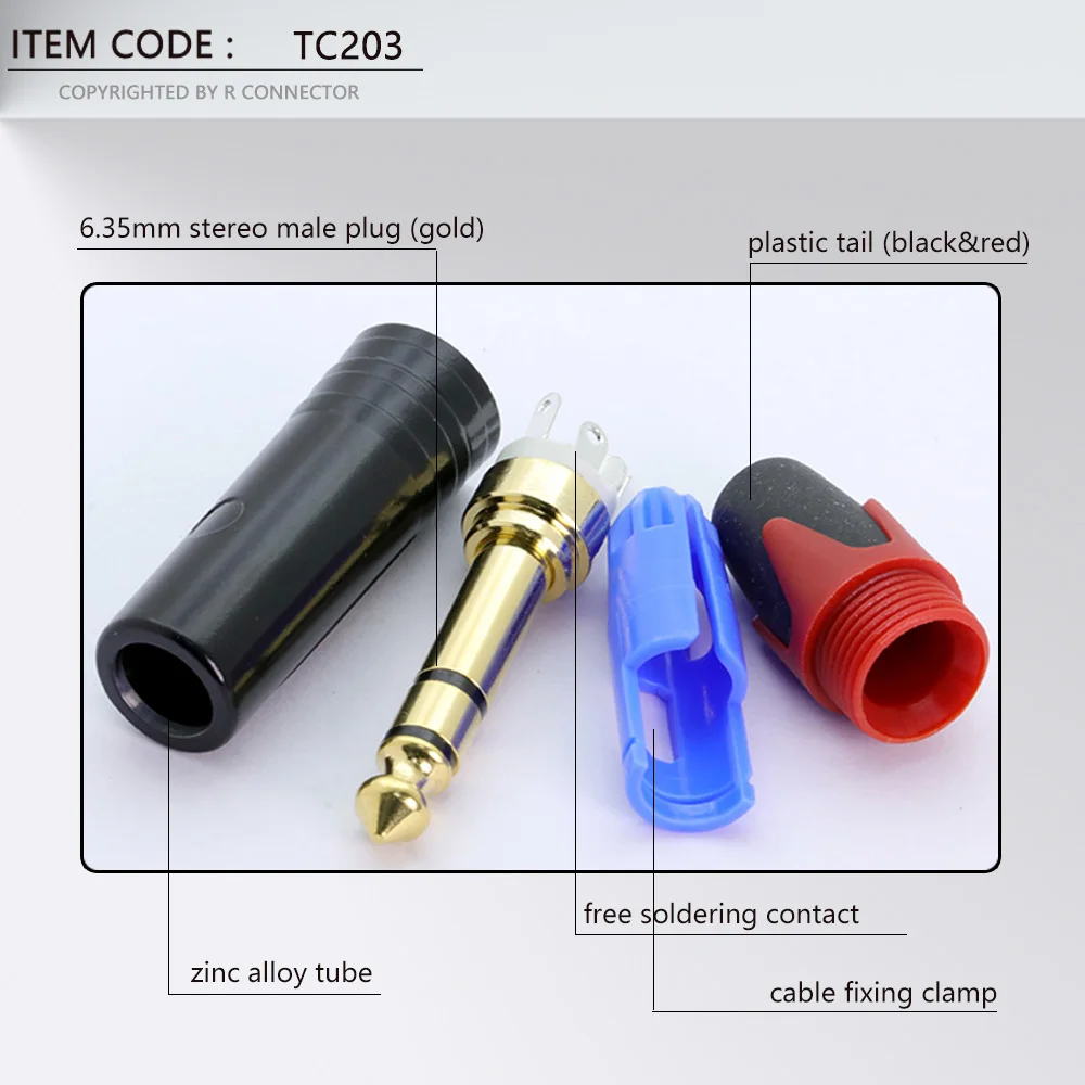 Стерео 6,35 мм Jack 1/4 дюймов 6,3 мм с разъемом «папа» припойная проволока Позолоченный разъем латунь аудио разъем для микрофона