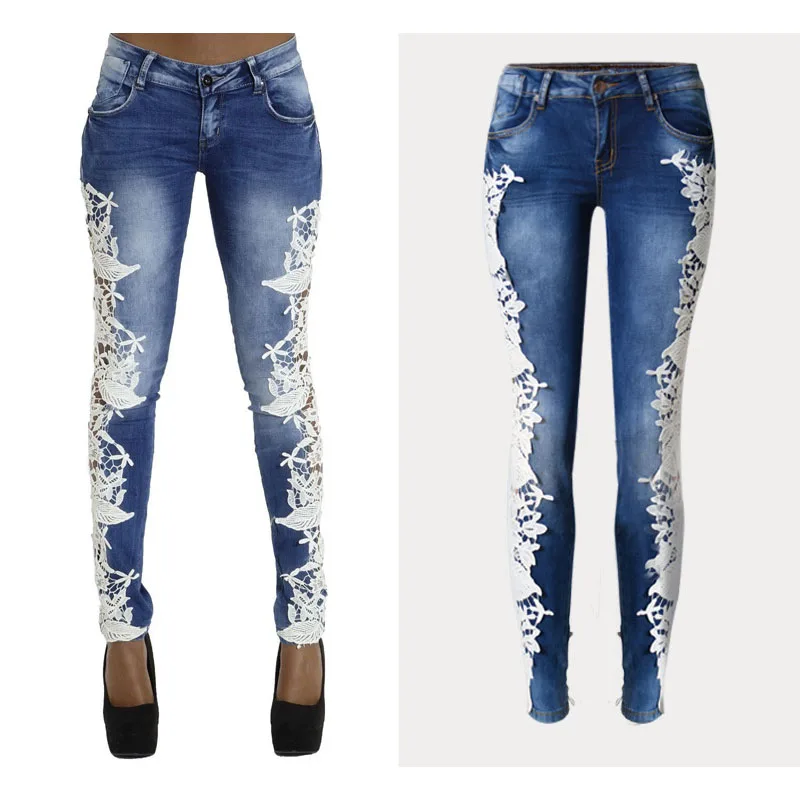 SUNSPA Новая Мода 2017 джинсы женщина Низкая Талия Вышивка джинсы женские мальчики джинсы с кружевом винтажные брюки-карандаш XXLНам $47,25 /Шт