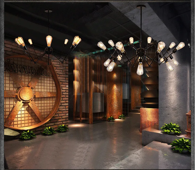 Современная промышленная лампа для коридора круглая Подвесная из кованого