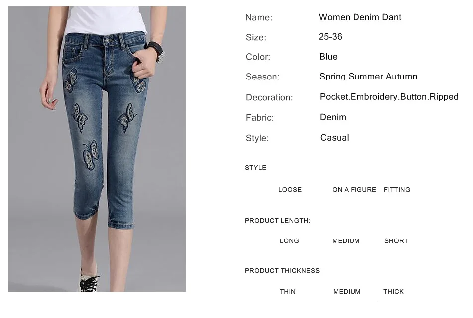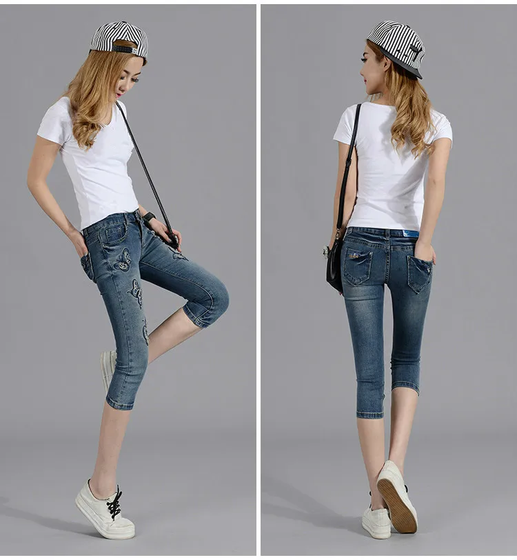 2020 летние модные узкие джинсы женские джинсы с вышивкой бабочки женские синие повседневные брюки капри 25-36 Y253