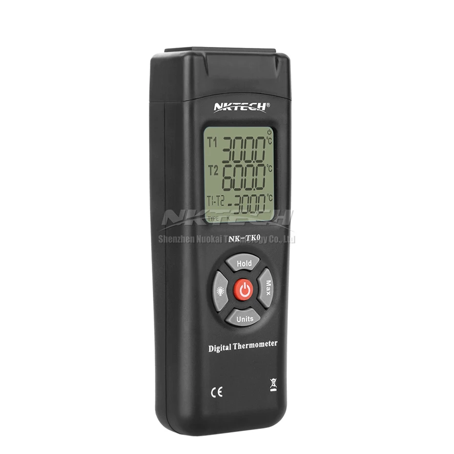 Особенности: Предназначен для идеальной посадки. Высокое качество 100% новый бренд. Двойной Тип K входы термопары. Большой дисплей с подсветкой. Макс/мин/Avg функция записи чтения. Функция удержания данных. Единицы измерения температуры CС принтом буквы «FK переключаемый. Автоматическое отключение питания. Индикатор низкого заряда батареи. Длина зонда: около 95 см. Питание: аккумулятор 9 В (не входит в комплект). Пользователь может выбрать: C/F/K. Тип K вход термопары. Двойной регулятор температуры с термопарным входных сигналов. Максимальное/минимальное/среднее и хранение данных. Разница температур (T1, T2). Большой ЖК-дисплей с подсветкой. Диапазон измерения: от-50 до 1350 градусов Цельсия (от-58 до 2462F). Точность: +-(0.15% rdg + 1C/1.8F). Рабочая температура: от 0 до 50C (от 32 до 122F) Рабочая влажность: 10-90% относительной влажности. Температура хранения: от-10 до 60C (от 14 до 140F). Влажность хранения: 10-75% относительной влажности. Размер продукта: около 16x5,2x3,3 см. Цвет: черный. # Батарея не будет включена в поставку из-за новых правил воздушной почты. Посылка включает в себя: 1 x Термометр термопары NKTECH NK-TK0 (без батареи). 1 отвертка NKTECH TL-1. 1 руководство пользователя на английском языке. 1 x сумка для переноски. 2 датчика зонда.