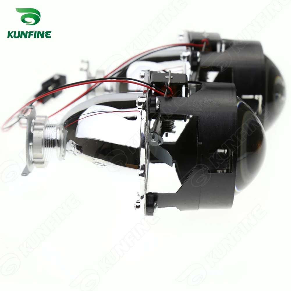 Слева без кожуха: 2x2,5 дюймовых Биксеноновые линзы прожекторного типа (левая рука водителя) + 1 x набор H4 и H7 гнездо кольца + 1 x набор Установка крепеж