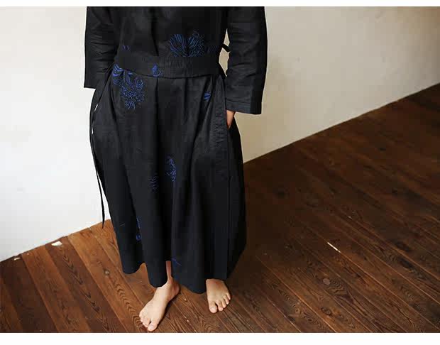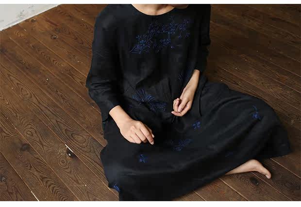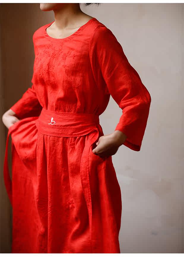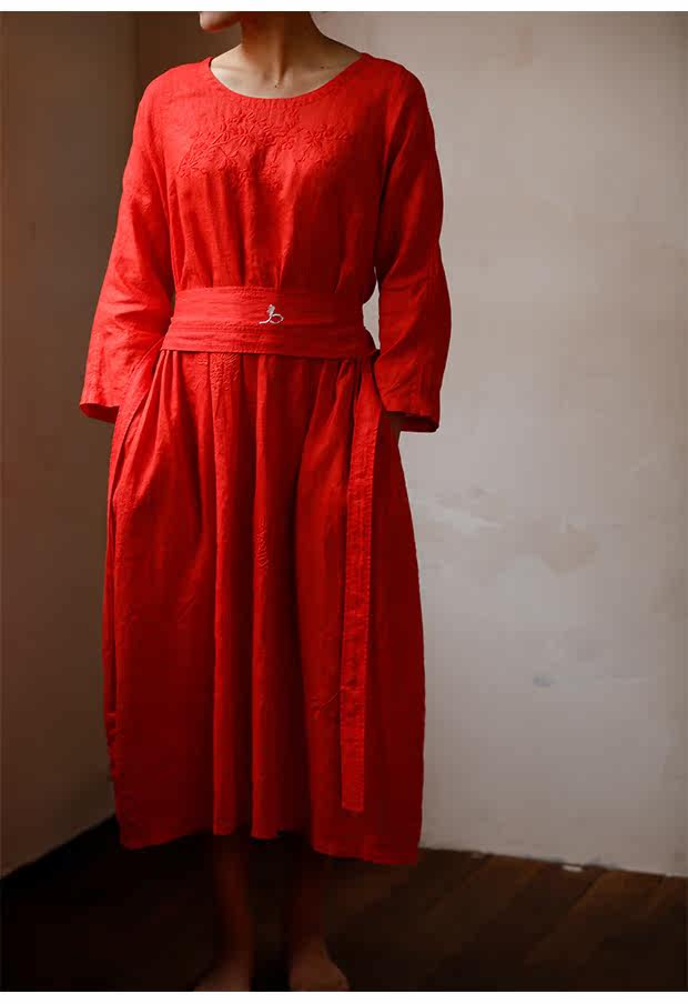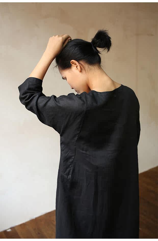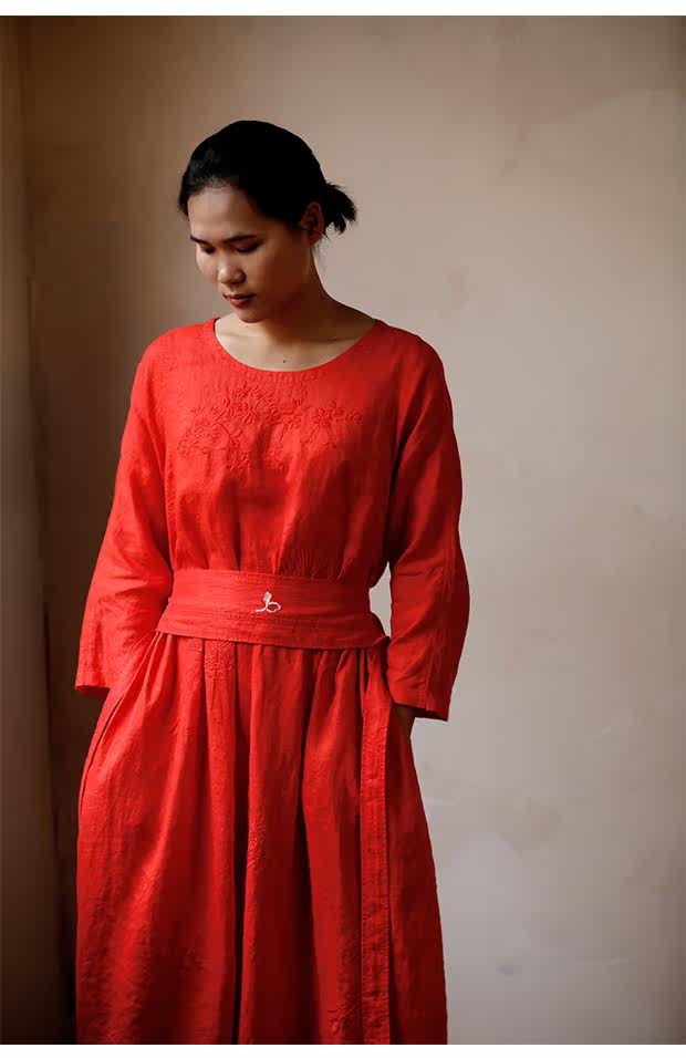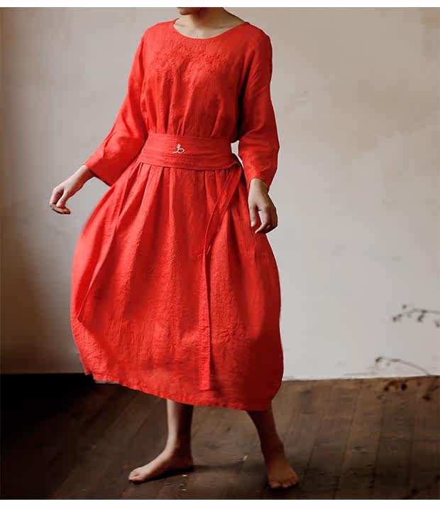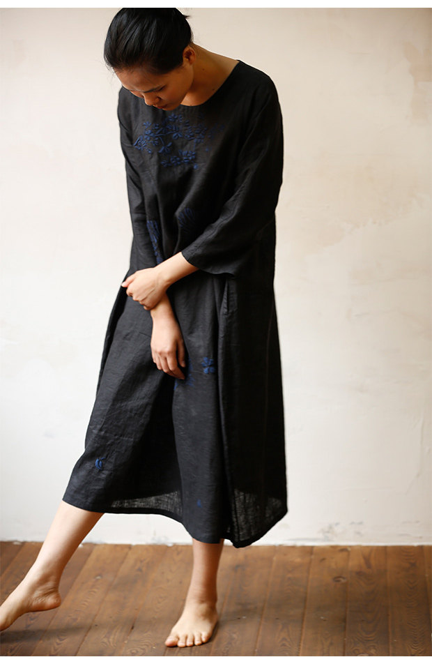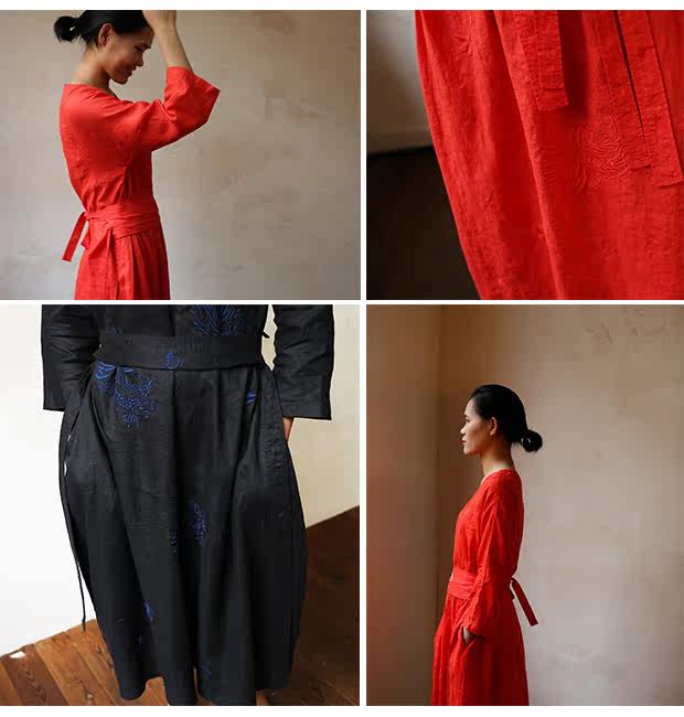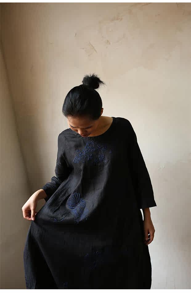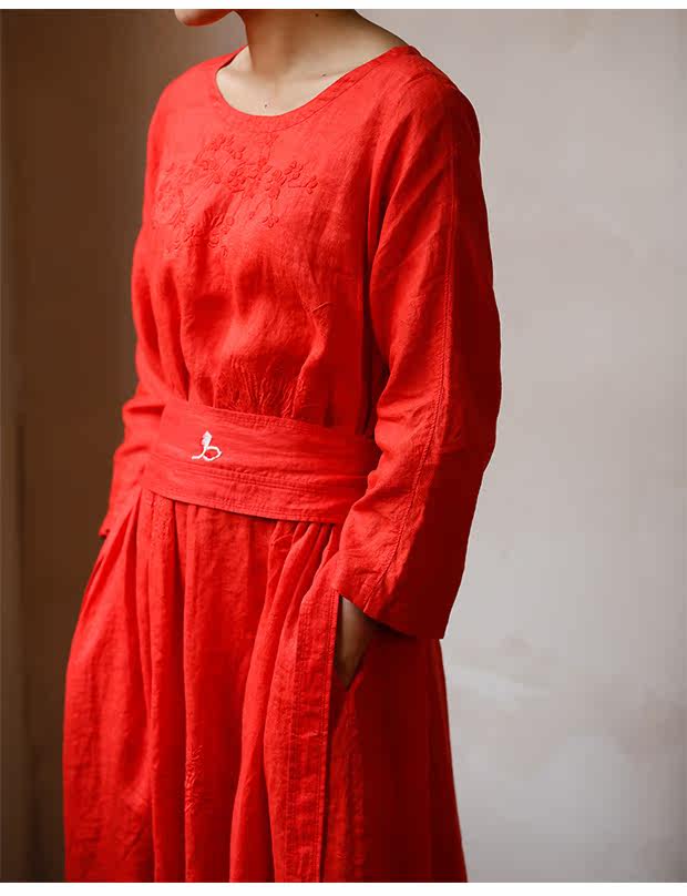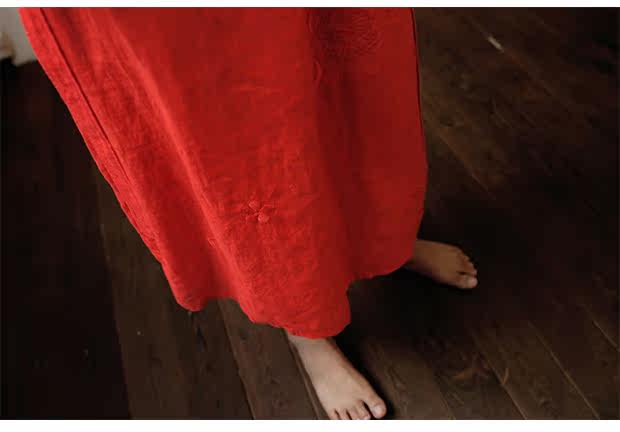 Linenall женский красный и черный вышитые высокой плотности 100% льняное с O-образным вырезом длинное платье халатик женскийСостав ткани: лен 100%Размер инфо (см):S Длина 111 плеча свободный бюст 102 рукав длина 8 баллов рукав ширина 35.5М длина 115 плеча свободный бюст 106 рукав длина 8 баллов рукав Ширина 36.5L Длина 119 плечо свободный бюст 110 рукав длина 8 баллов рукав Ширина 37.5Рост модели 163 см Weigth 96 г, обхват груди 78 талии 68 бедра 89 ношение м код
