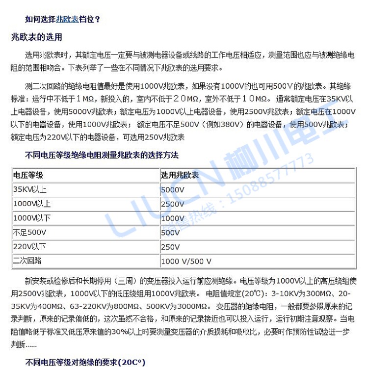 С быстрым развитием современной жизни, люди не могут жить без электричества на минуту. В процессе использования электричества возникают проблемы с безопасностью использования электричества. В электрическом оборудовании, таких как мотор, кабель, бытовые приборы и так далее. Одним из их нормальных условий эксплуатации является степень изоляции их изоляционных материалов, то есть значение сопротивления изоляции. При нагревании и демпфировании изоляционные материалы стареют. Его сопротивление изоляции уменьшается. В результате утечки электрического оборудования, сопротивление изоляции различного электрического оборудования должны быть часто измерены. Определите, соответствует ли степень изоляции требованиям оборудования. Существует два способа измерения общего сопротивления: измерение низкого напряжения и измерение высокого напряжения. Однако сопротивление изоляции, как правило, имеет высокую ценность (Мега-ом уровень). Измеренное значение при низком напряжении не может отражать истинное значение сопротивления изоляции при высоком напряжении. Megohm метров также называются изолированные резисторы. Это обычный инструмент для измерения сопротивления изоляции. Он имеет высоковольтное электричество при измерении сопротивления изоляции, что является разницей между ним и измерительным прибором сопротивления. Megohmeter является удобным и надежным для измерения сопротивления изоляции. Но если он не используется должным образом, это приведет к ненужным ошибкам в измерениях. Мы должны правильно измерить сопротивление изоляции megohm.