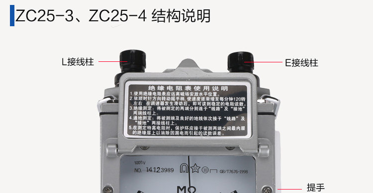 2,При измерении изоляции два конца испытанного объекта могут быть соответственно соединены друг с другом"Наземный"И"Линия"Два на клеммной колонке, в соответствии с номинальной скоростью вращения ручки, вы можете измерить значение сопротивления.
