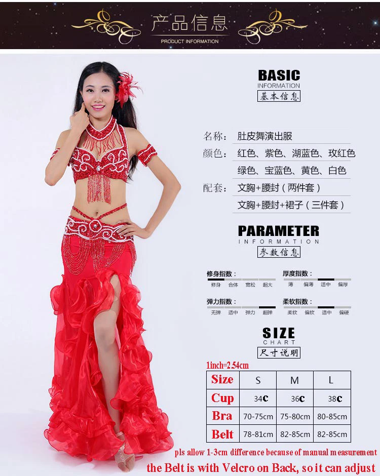5 шт./компл. ручной работы шила танец живота костюмы популярный Восточный танцующий комплект платья бюстгальтер + пояс + юбка + цепочки и ожерелья + Arms