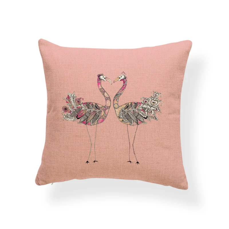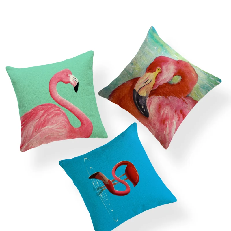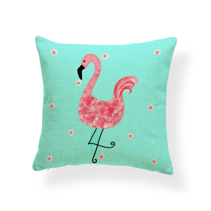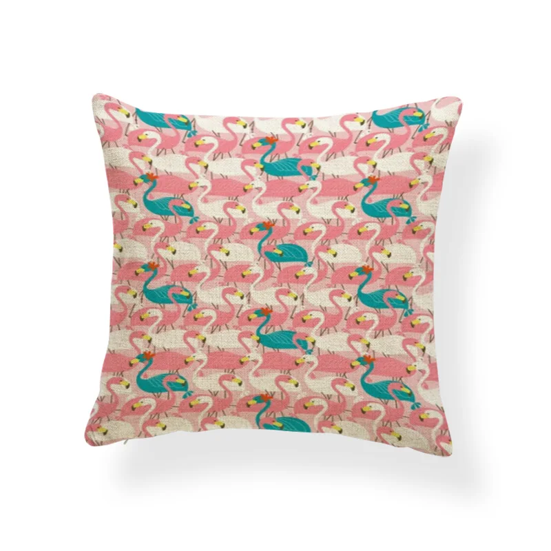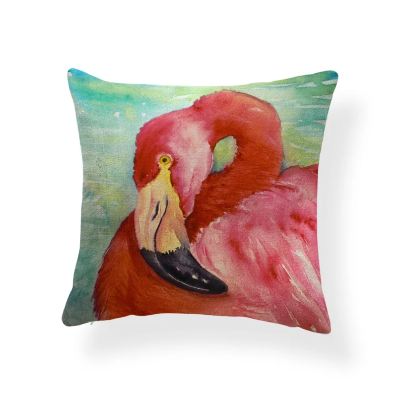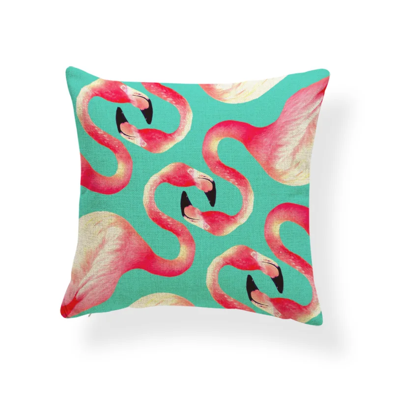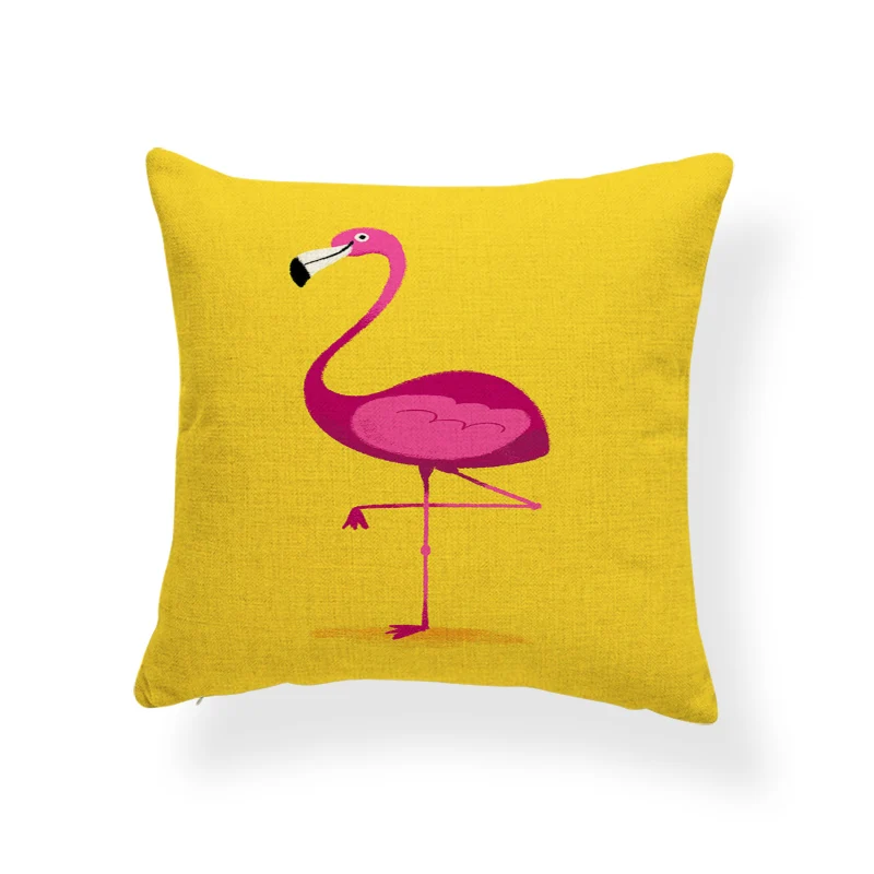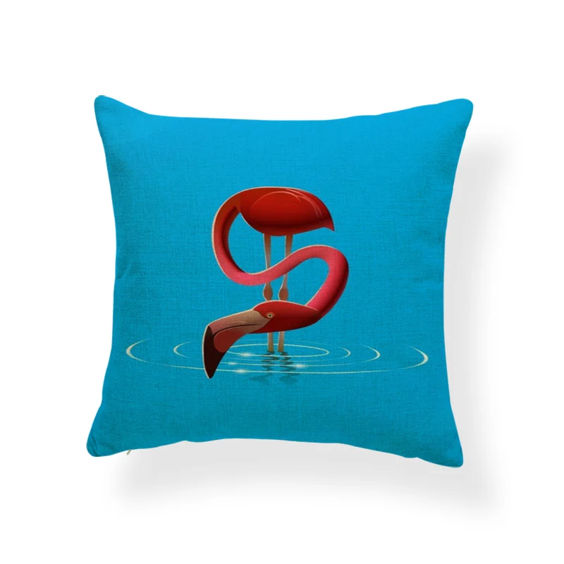 Стильная красивая наволочка с изображением фламинго, Геометрическая декоративная наволочка для спальни, гостиной, полиэфирная льняная подушка для отдыха на заказ, синие, зеленые, красные, розовые, желтые, коричневые листья