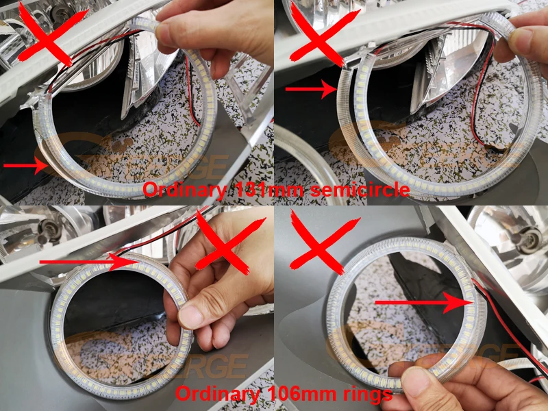 Важно: эти smd светодиодные ангельские глазки отличаются от других брендов ангельские глазки. Это с smd led высшего качества, и это автомобильный стиль. Не нужно резать рассеиватель, объектив и пластик внутри фары. Фабрика Geerge angel eyes проводила идеальную установку, насколько это возможно, не уничтожая внутреннюю структуру фар. Это невозможно для других брендов товаров.