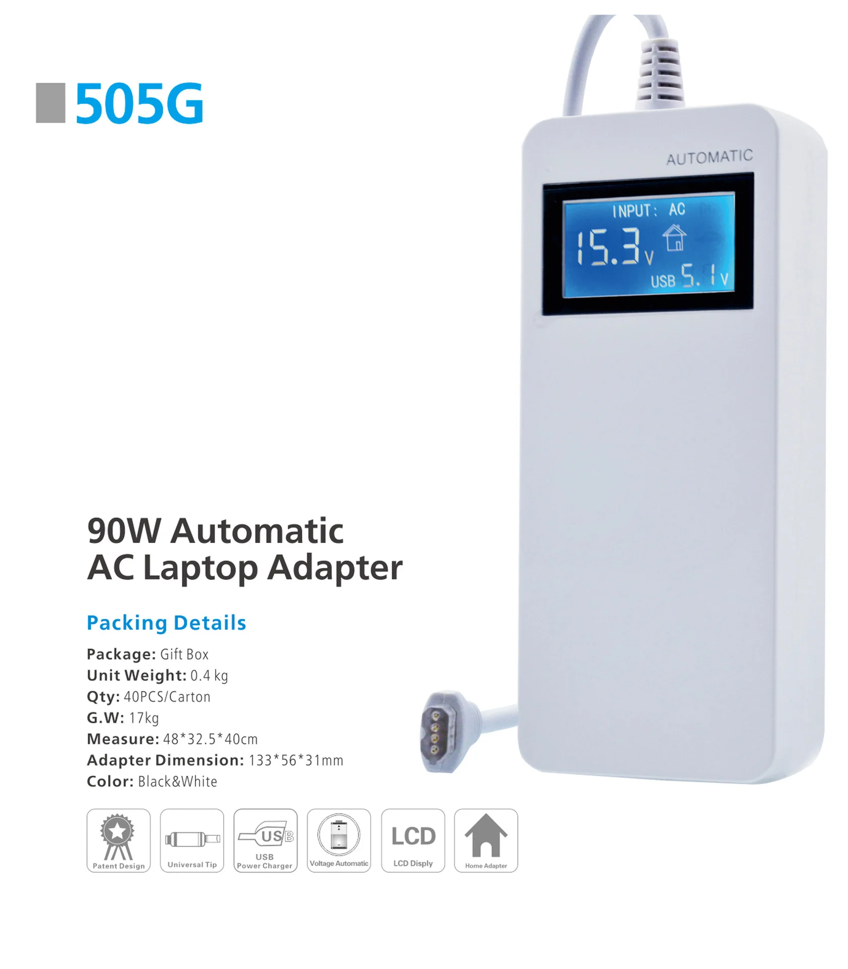 LCD умный многофункциональный универсальный источник питания для дома и путешествий планшет зарядное устройство адаптер для ноутбука 90 Вт с USB