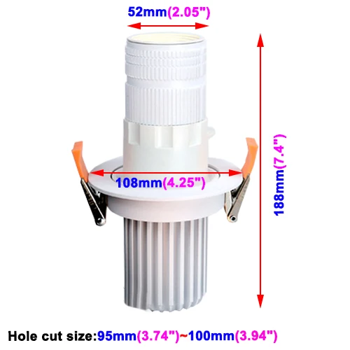 Размеры | 3 Вт/5 Вт/7 Вт/10 Вт: Размер отверстия: 95 мм (3,74 ")~ 100 мм (3,94") Светильник: 108 мм (4,25 ") x52мм (2,05") x188мм (7,4 ") 15 Вт/20 Вт: Размер отверстия: 110 мм (4,33 ")~ 120 мм (4,72") Светильник: 140 мм (5,51 ") x52мм (2,05") x160мм (6,3 ") |