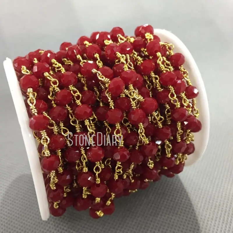 RC5023 4x6 мм Чистый золотой цвет граненые бусины Rondelle Хрустальная цепочка Розарий из красного стекла