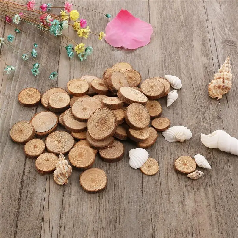 OULII 100 шт 1,5-3 см деревянные срезы диски для поделок своими руками Свадебные центральные части (цвет древесины)