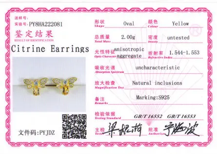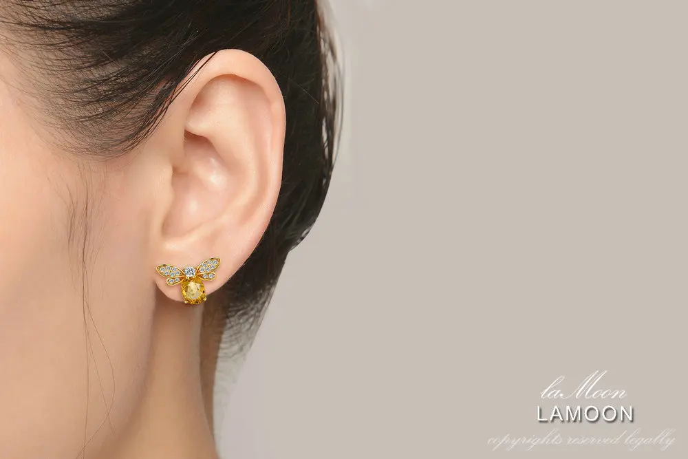 【Тип товара 】:МилыйСерьги-гвоздики в виде пчелы цитрина