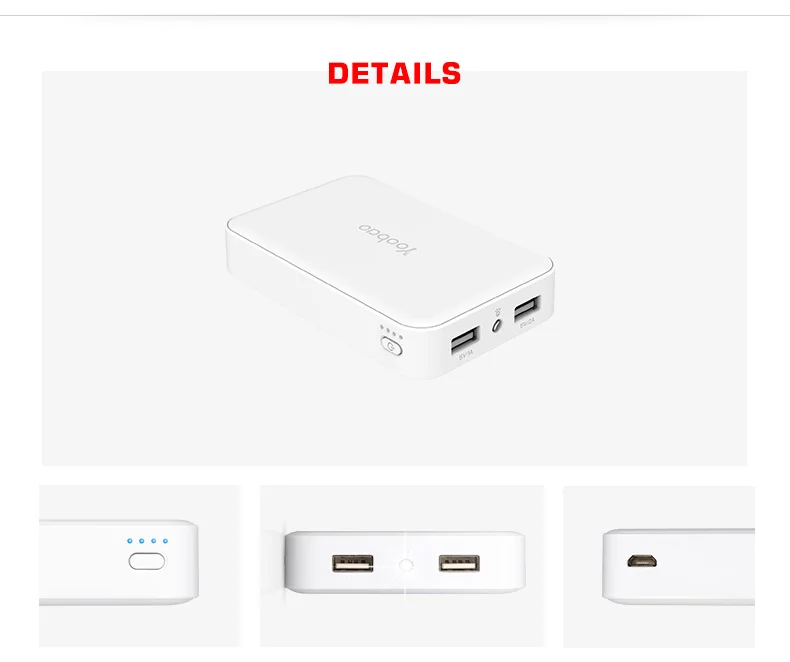 Что вы получаете: 1 x Yoobao M5 Портативный Зарядное устройство; 1 х кабель Micro USB (Кабель Lightning для iPhone/iPad не входит в комплект) Руководство пользователя (1 шт.)