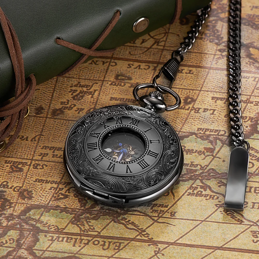 1. 100% абсолютно новый высококачественный 2. Винтажный дизайн 3. Чехол для часов со скелетом 3. Чехол из нержавеющей стали и цепь из нержавеющей стали 4. Посылка включает в себя: 1 * карманные часы 1 * цепь 5. Чехол Диаметр: 4,8 см/1,89 дюйм (ов) 6. Длина цепочки часов: 34,5 см/13,6 дюйма