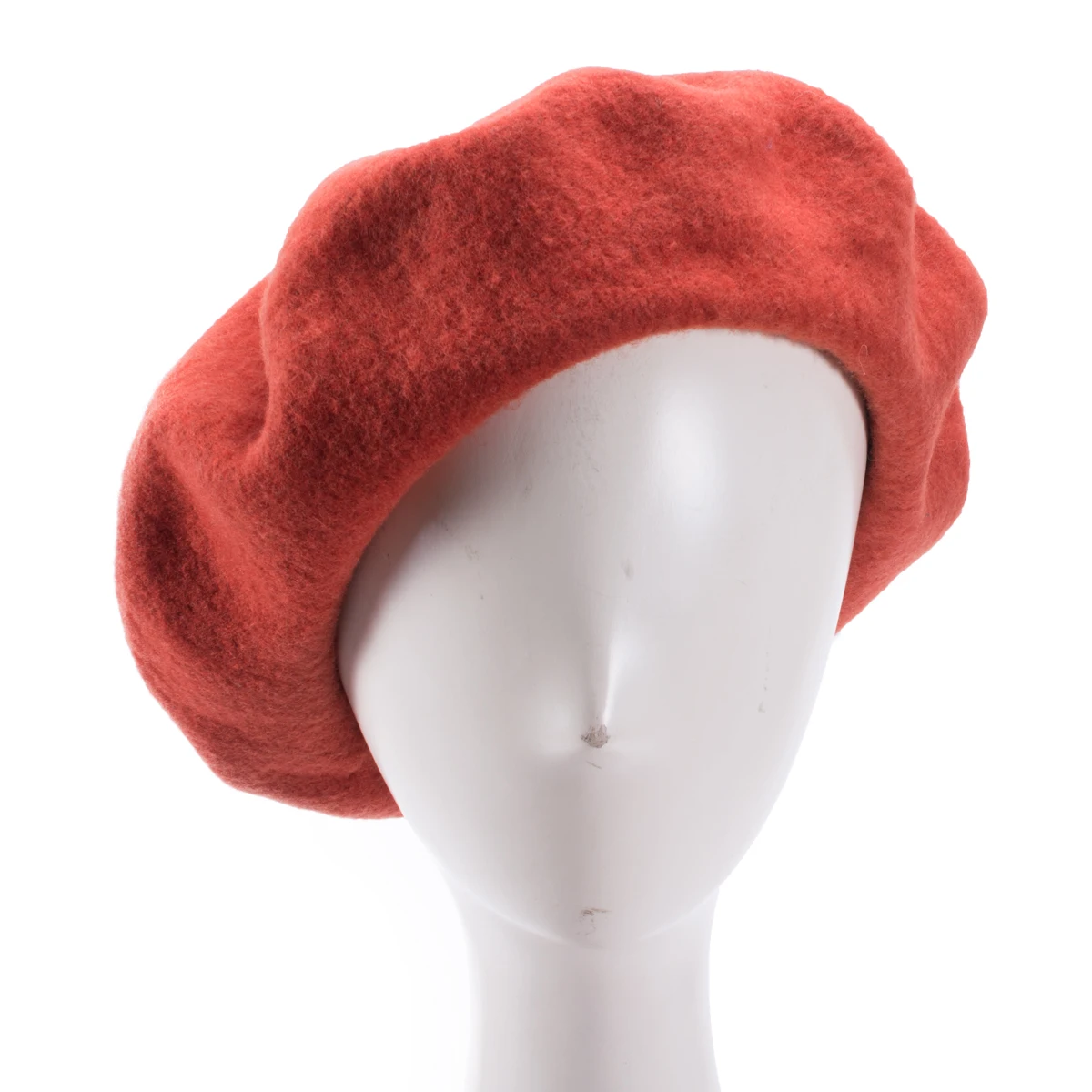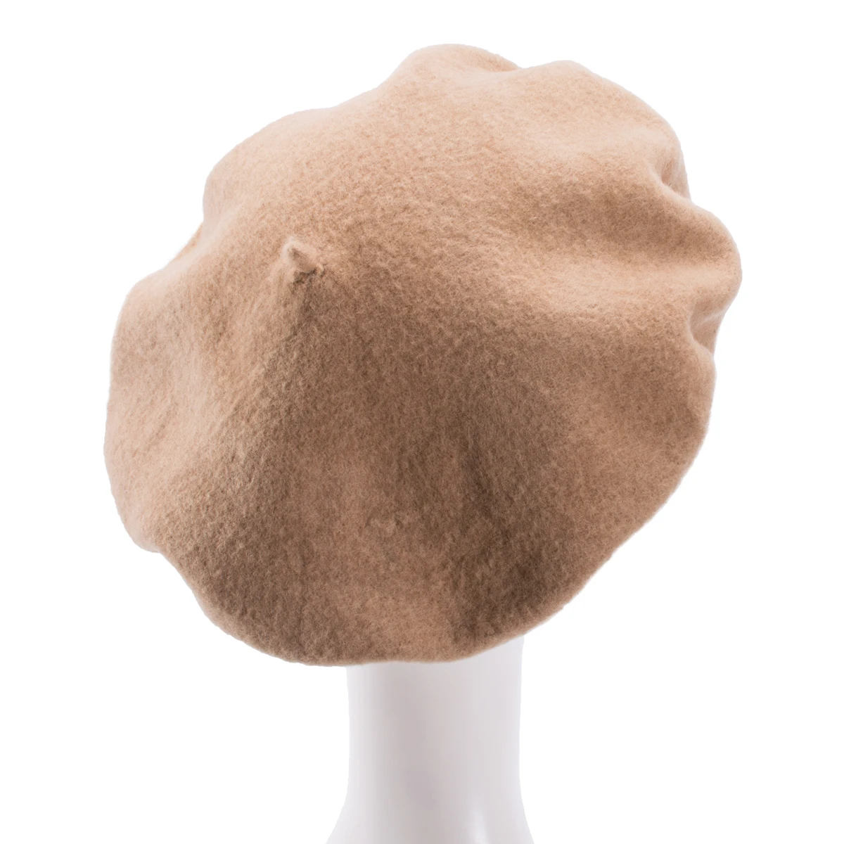 Женский шерстяной берет с большим сердечком однотонный теплый в форме сердца для