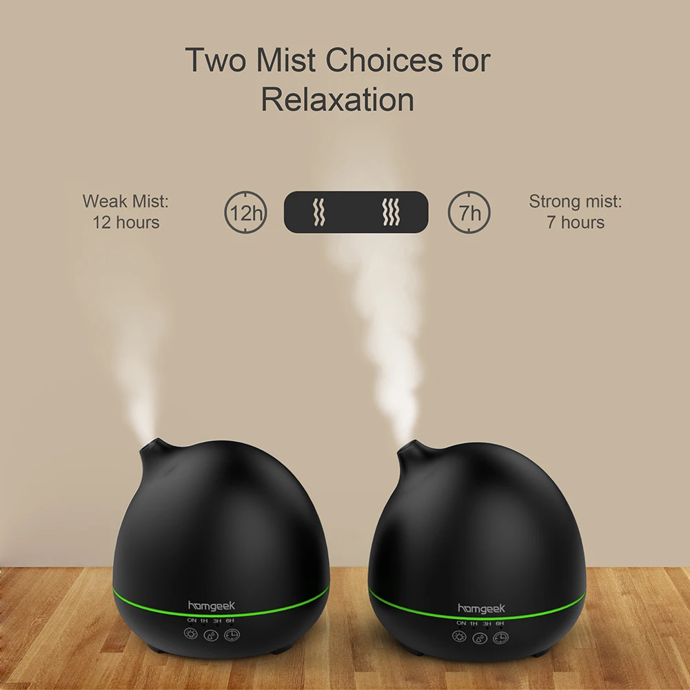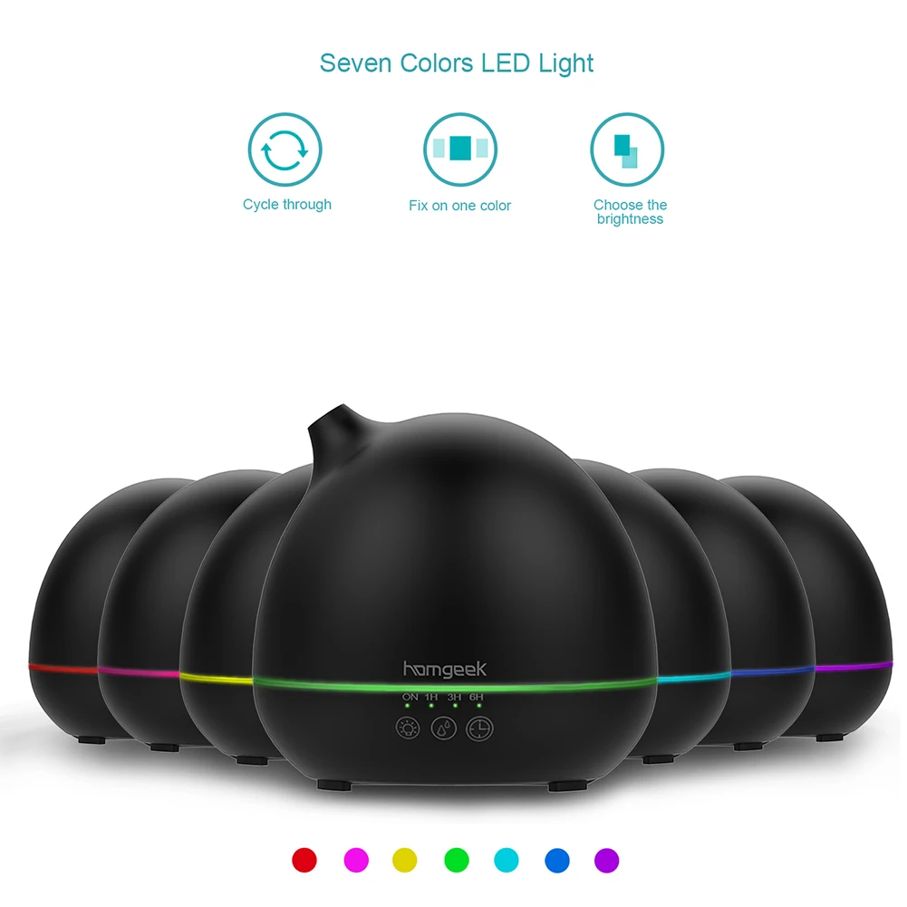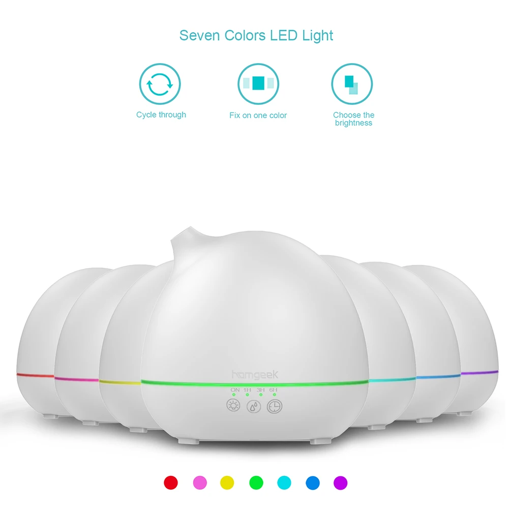 Homgeek 400 мл ароматерапия эфирное масло диффузор обеспечивает spa-как ощущение, чтобы снять стресс, снимите неприятные запахи и поднимите настроение. Нанесите на 20 квадратных метров пространство с несколькими функциями, включая Красочный светодиодный ночник, ароматерапия диффузор и воздушный диффузор. Подходит для офиса, спальни, комнаты для учебы, столовой, детской комнаты и многое другое.