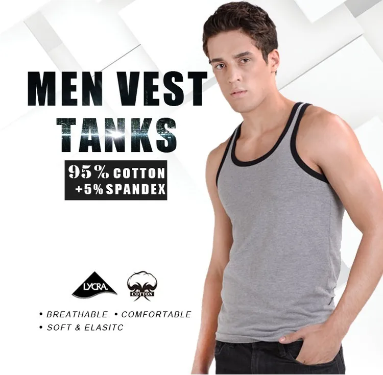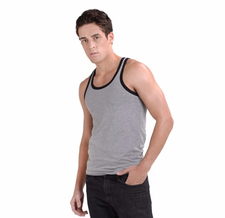 Летние контрастные цветные мужские топы на бретелях, повседневные хлопковые мужские рубашки размера плюс, жилет для мужчин, K-5013 для бодибилдинга