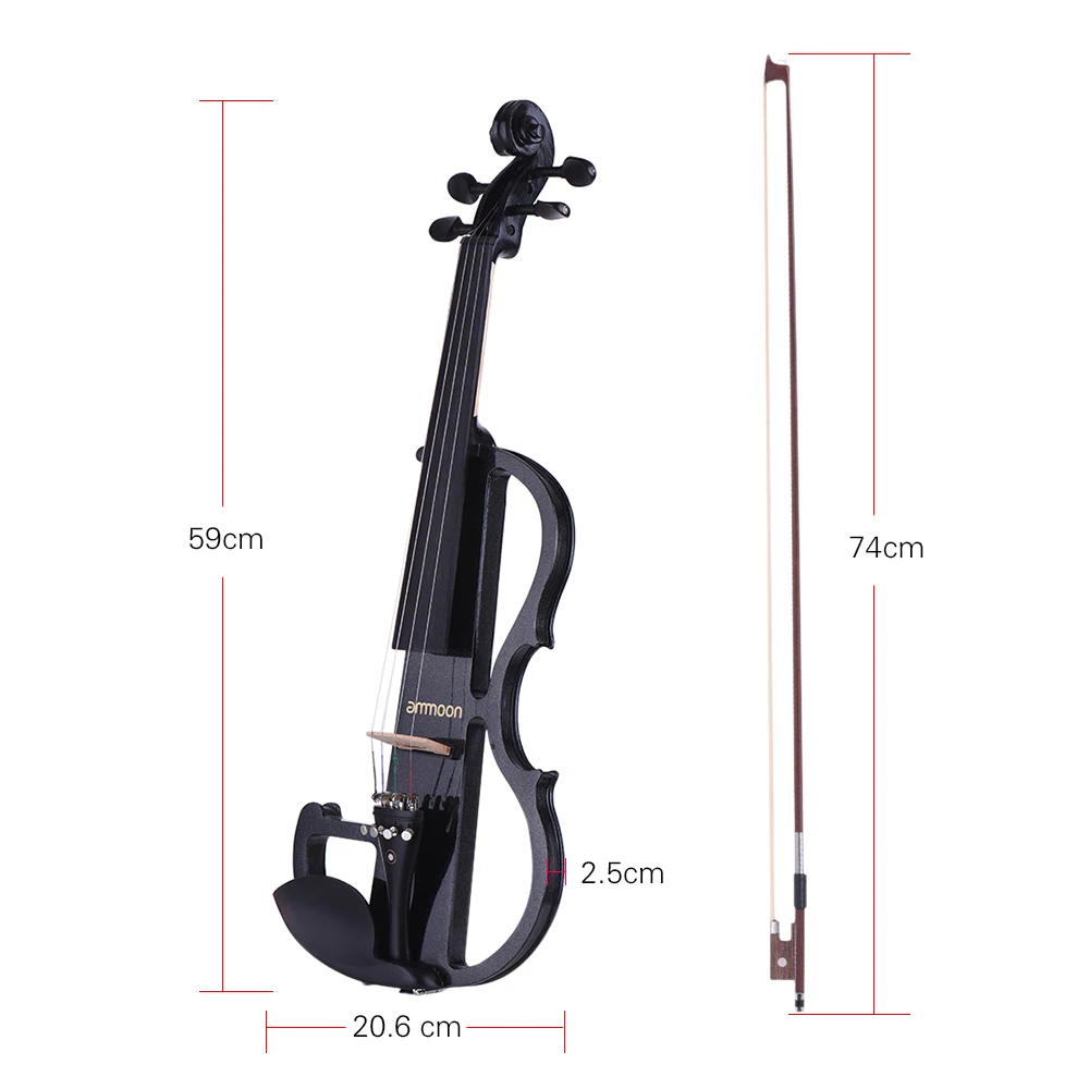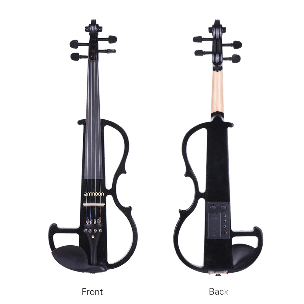 Ammoon полный размер 4/4 из цельного дерева электрическая Бесшумная Скрипка Стиль-2 черное дерево гриф колышки подбородок хвост