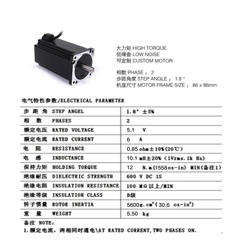 8618HB5401:12.00N.m/6.0A/0,85Ом/10.1mH