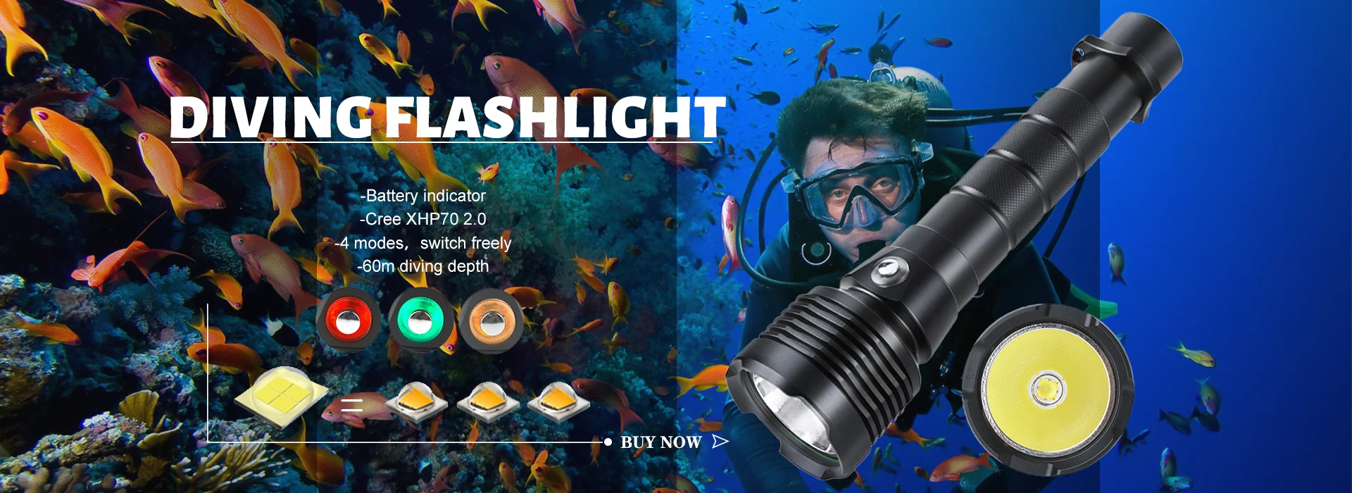 1. Пожалуйста, включите светильник перед погружением, убедитесь, что переключатель должен очень плотно завинчиваться. 2. Пожалуйста, очистите фонарик пресной водой после каждого погружения. 3. Пожалуйста, смазывайте нити переключателя и уплотнительные кольца после каждого погружения. 4. Уроните фонарики на песок, в чехол песок переходит в переключатель и нитки. 5. Пожалуйста, выньте аккумуляторы, если вы не используете фонарик в течение длительного времени.