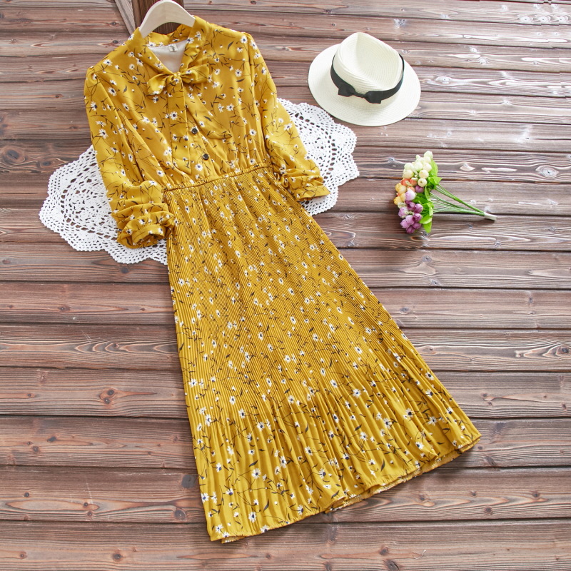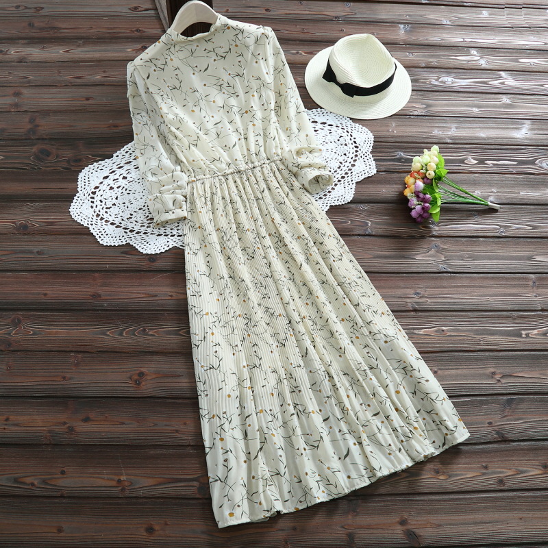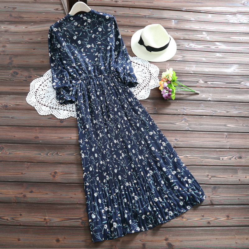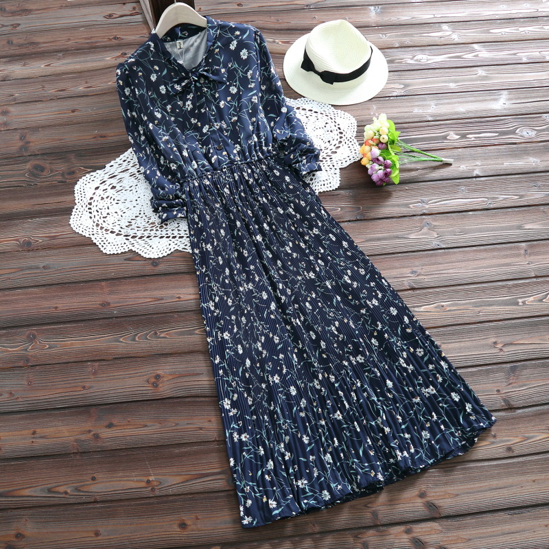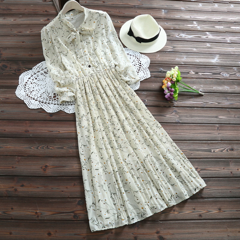2018 Новые весенние и летние милые женские шифоновые платья mori girl с длинным рукавом и цветочным принтом