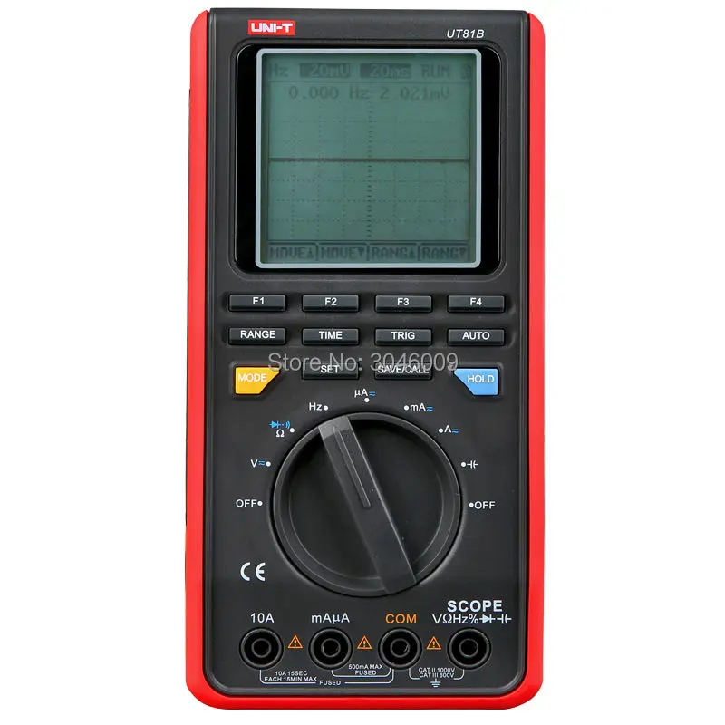 UT81BIshandheld цифровые осциллографы мультиметры, которые имеют встроенную технологию цифрового управления дизайном и установить цифровой осциллограф и цифровой мультиметр в одном. Режим измерения осциллографа-это полная интеллектуальная система измерения, включая вход сигнала, обработку данных, автоматический поиск, хранение и передачу сигналов; Режим измерения мультиметра измеряет напряжение и ток переменного/постоянного тока, сопротивление, падение прямого напряжения диода, непрерывность, частота, коэффициент работы и емкость.