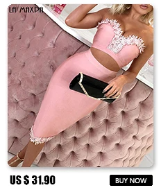 Женское Бандажное платье розовое облегающее до колена с треугольным вырезом на