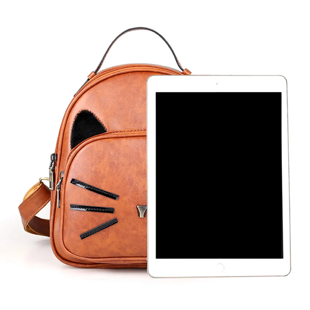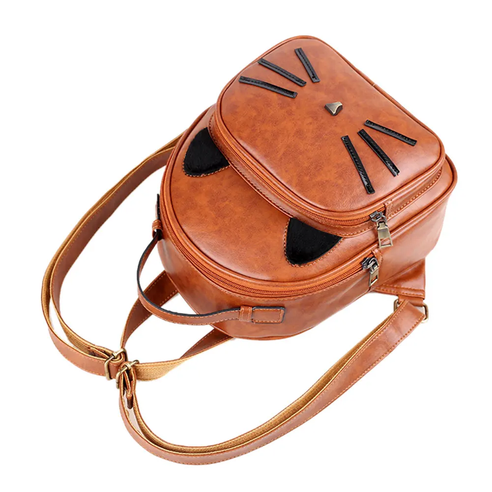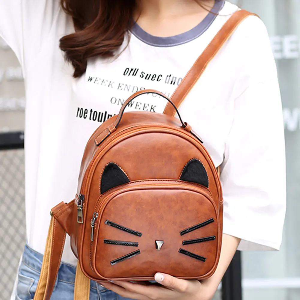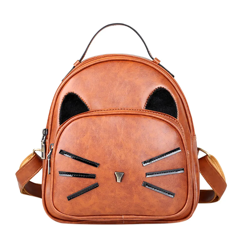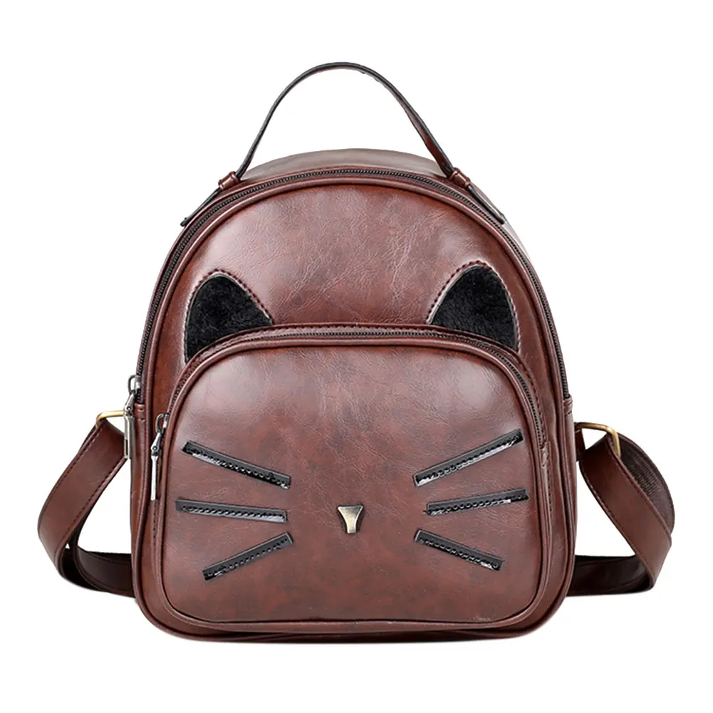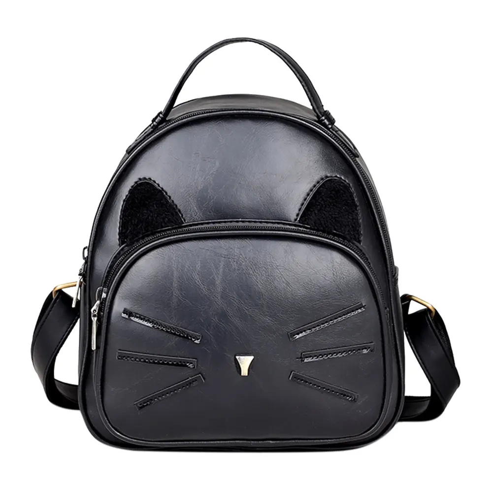 Новый женский рюкзак из искусственной кожи с милым рисунком кота, элегантный дизайн, школьная сумка для девочек