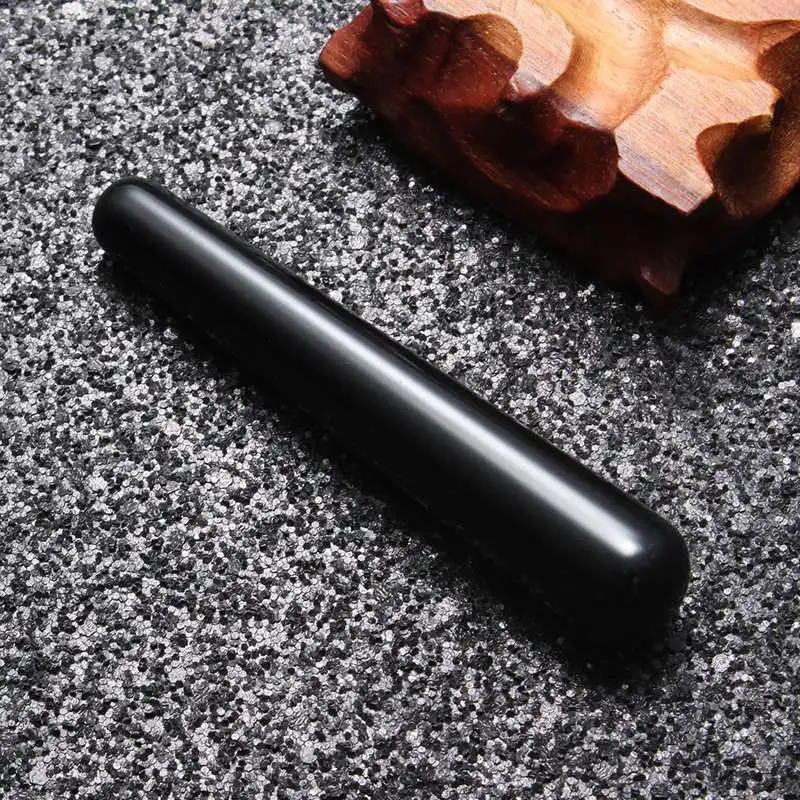 Он был сделан из натурального черного обсидиановый кристалл и полирован гладким глянцевым внешним видом. Он может использовать вашу грудь, руку, стопу, талию, шею, голову и другие тела.