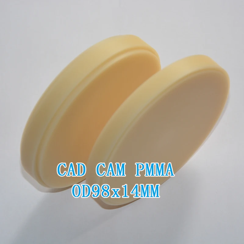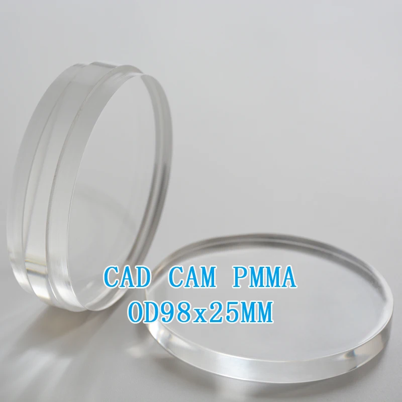 OD98mm PMMA блоки совместимы с открытой CAD/CAM фрезерной системой. В наличии Размер 98*10/12/14/16/18/20/22/25 мм Наши PMMA фрезерные блоки из смолы армированный воск пустой, который характеризуется 100% выгорания, не оставляя остатка и подходит для CNC фрезерования anf литья техники. Доступные цвета: A1, A2, A3, A0.