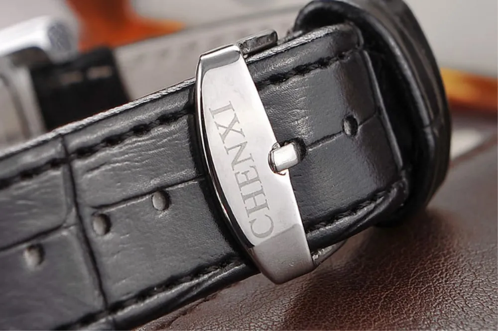 CHENXI известный бренд часы мужские прямоугольные золотые наручные часы повседневные хронограф кожаные кварцевые часы мужские подарочные часы PENGNATATE