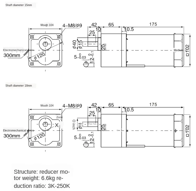 Установка: Горизонтальная Вертикальная Механизм замедления: редуктор Модель: 6IK180GU-CF, 6IK200GU-CF, 6IK250GU-CF, 6IK300GU-CF Мощность (p): 180 Вт/200 Вт/250 Вт/300 Вт Диаметр вала: & phi;15 или 18 (два диаметра вала по желанию, Одинаковая цена) Напряжение (В): 220 В переменного тока или 380 В (может быть изменено Специальное напряжение) Коэффициент скорости (k): 3,3, 6,5,6,7, 5,9,10,12, 5,15,18,20,2530,36 г40,50,60,75, 90100120150180250,300 Тип вала: круглый вал Номинальная скорость: 1400 об/мин Скорость вала (r): 466388280233186155140112, 93,78,70,56,46,39,35,28,23,18,16,14,11,9,8,64,8 (за считанные минуты в минуту) Скорость диапазон: 0-r Материал: Шестеренчатый вал (сталь плюс твердый), катушка (100% медь), корпус (алюминиевый сплав) Произведено в г. Чжэцзян, г. Тайчжоу Рыночная цена: 740 юаней Вес: 7 кг Нужен регулятор, горизонтальный Монтажный кронштейн другого кадра Установка Размер: