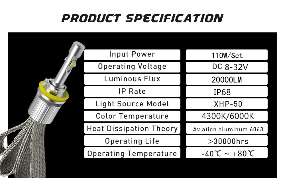 Модель лампы: H4/H7/H11/9005/9006/9012/H13/9004/9007/D1S R/D2S R/D3S R/D4S R