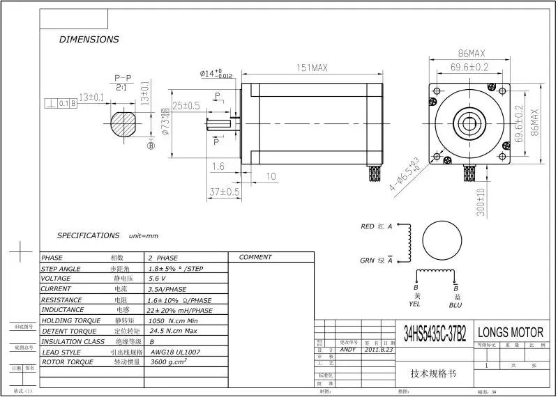 3 шт. Nema 34HS5435C-37B2 шаговый двигатель с 4 проводами, 1600 унций. В биполярном