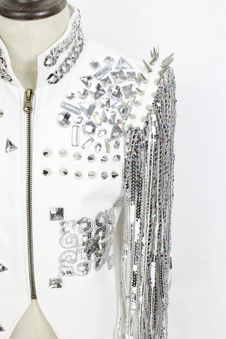 Сценические костюмы для певцов хип-хоп одежда серебряное бриллиантовое пальто мужская одежда DJ танцевальный костюм