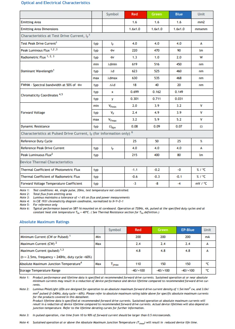 LUMINUS SBT-16 светодиодный параметр свойства: