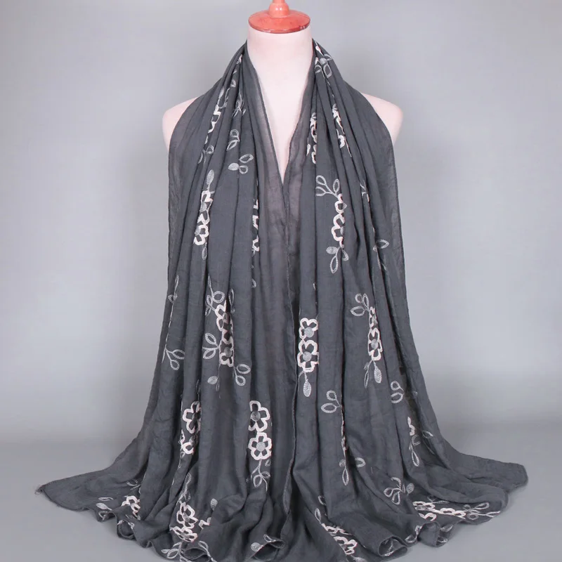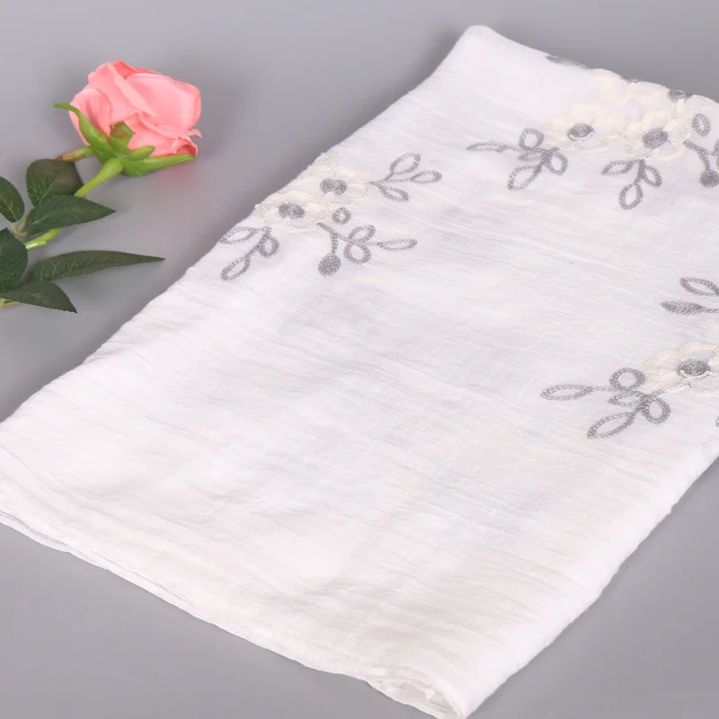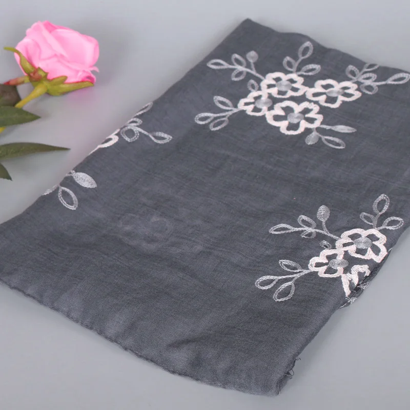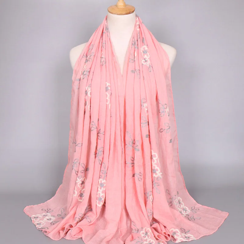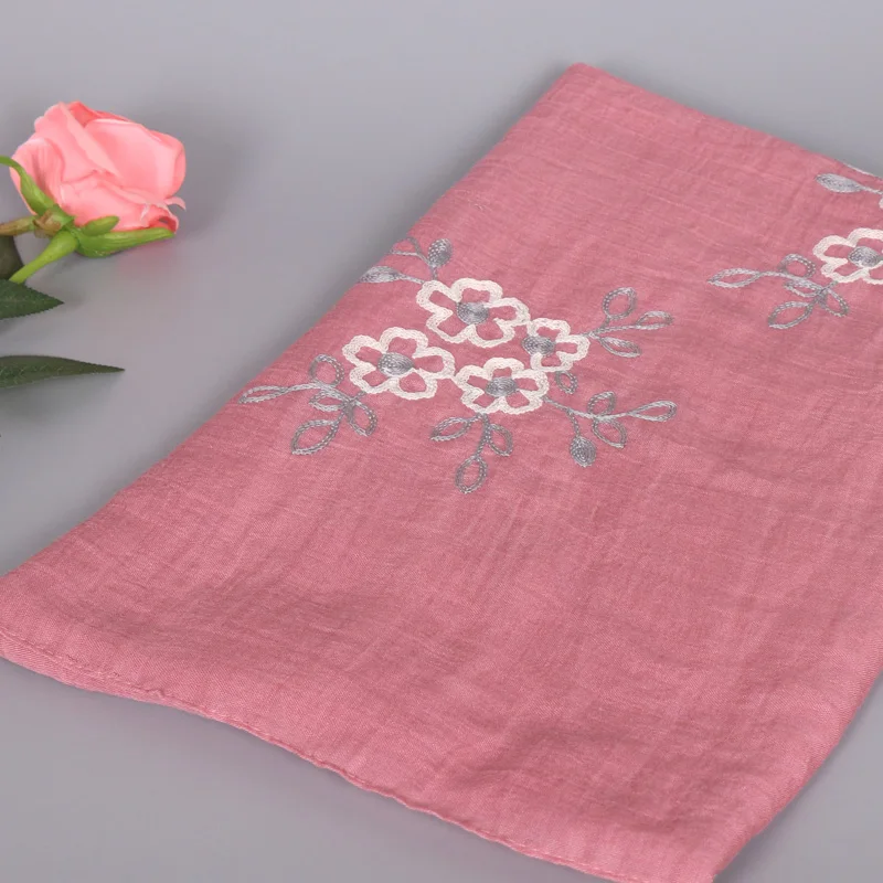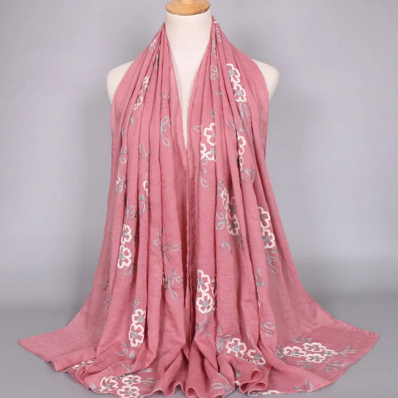 Хиджабы для женщин вышитые вискозный мусульманский головной убор Бандана Mujer Простой Большой размер шаль 80x180cm