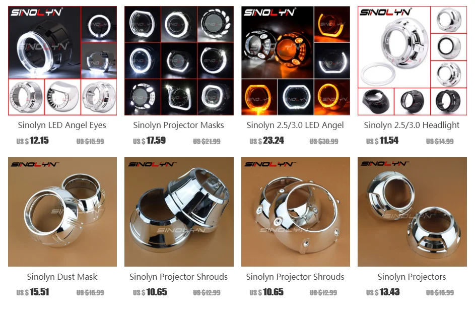 Прожекторные кожухи Sinolyn для Hella 3R G5/Koito Q5, линзы янтарного, белого цвета, светодиодный переключатель, маски «ангельские глаза», автомобильные фары, аксессуары, сделай сам