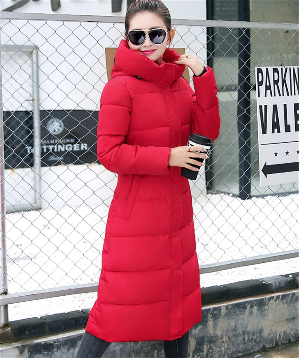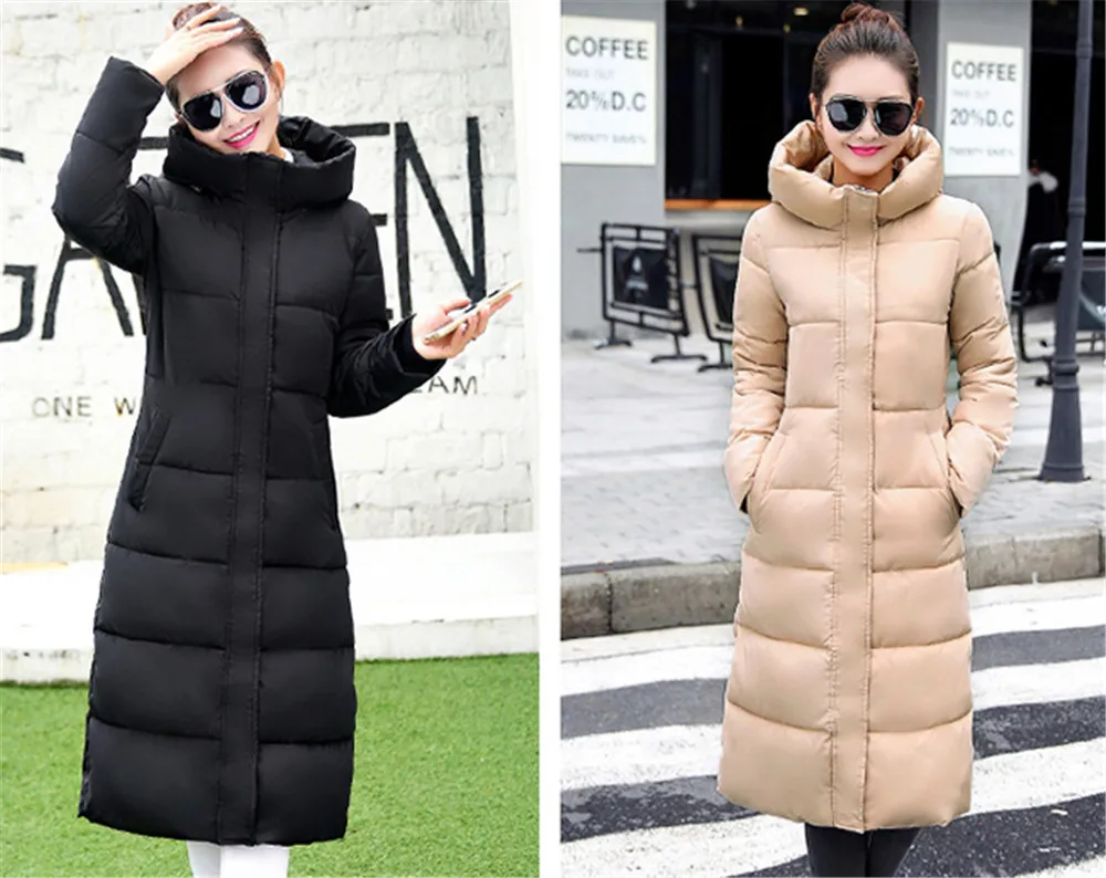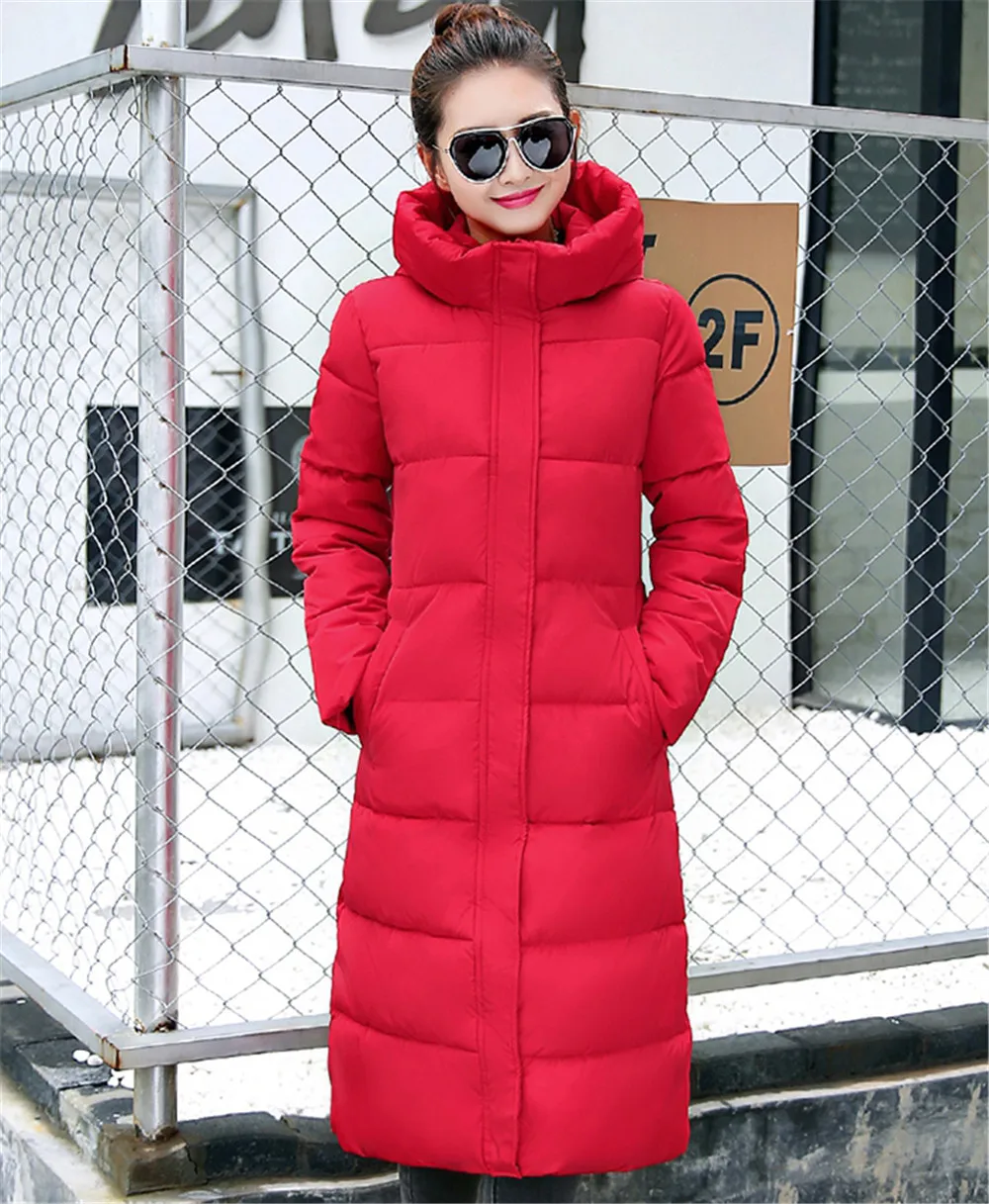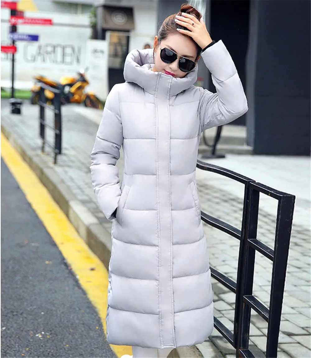 Женская зимняя длинная куртка 2020 НОВАЯ тонкая теплая хлопковая стеганая куртка с капюшоном Женская однотонная парка с длинным рукавом большого размера OK048