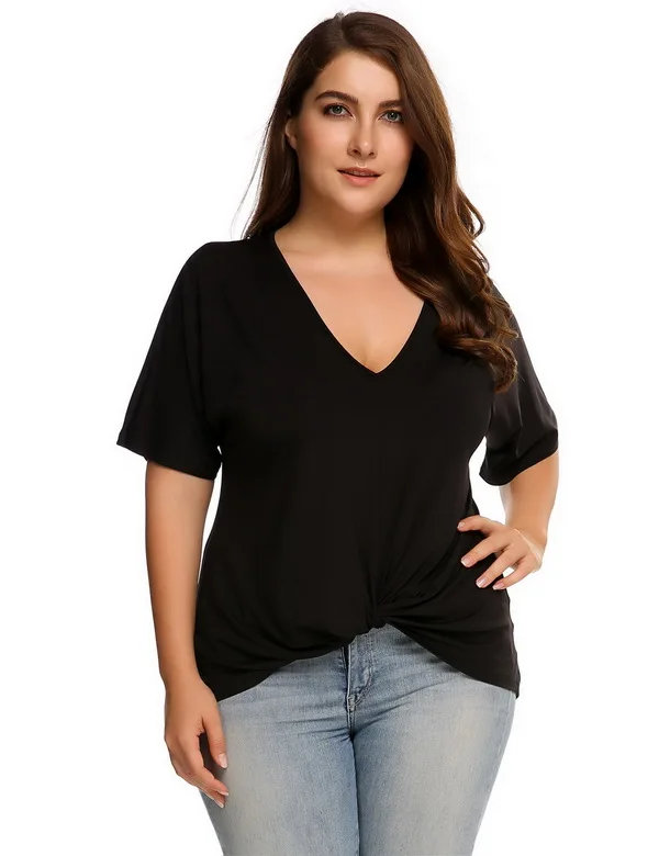 [Стиль] : IN'VOLAND женская футболка большого размера; Сезон лето-осень; Пикантная Повседневная футболка с глубоким v-образным вырезом; Большие размеры s; Футболка с короткими рукавами и драпировкой; Женская футболка