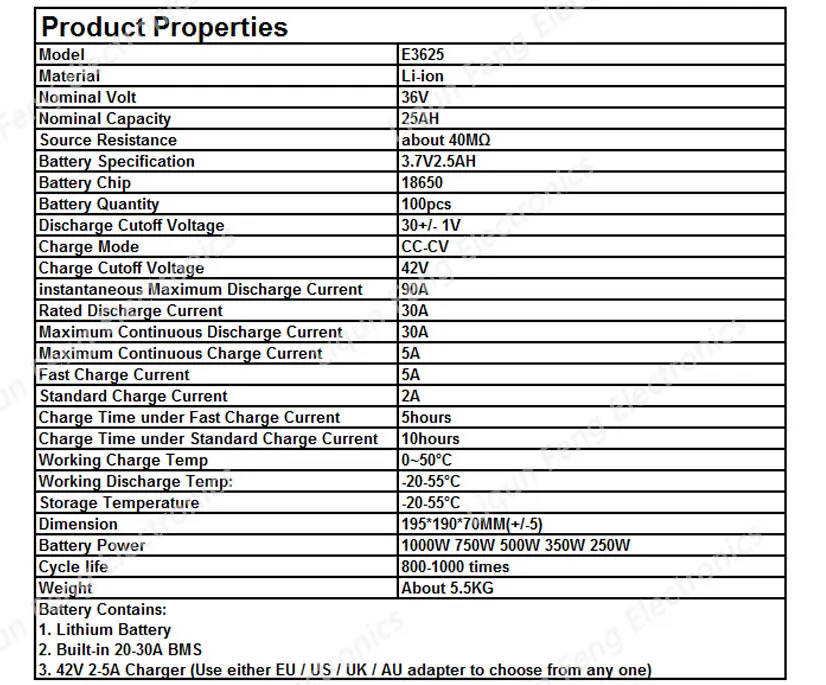 Бесплатная доставка, 36V 25AH Электрический велосипед Батарея е-байка 36В 25AH, фара для электровелосипеда в Мощность литий Батарея для 1000 Вт мотор с 42В 2A Зарядное устройство 50A BMS.
