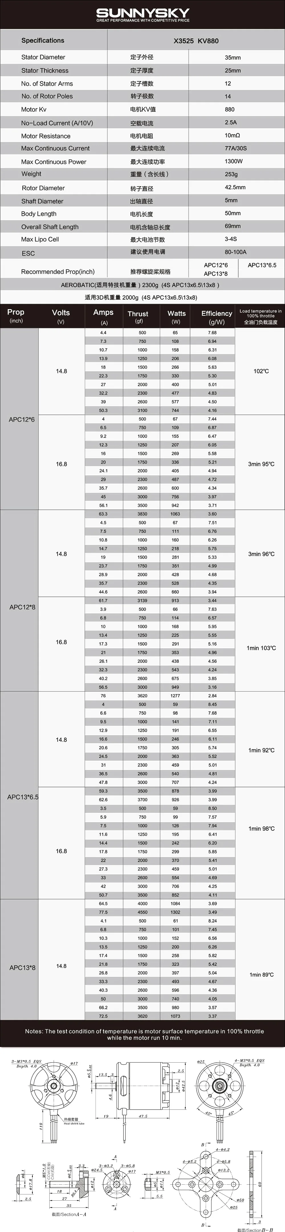 SunnySky X3525 880KV Мотор: